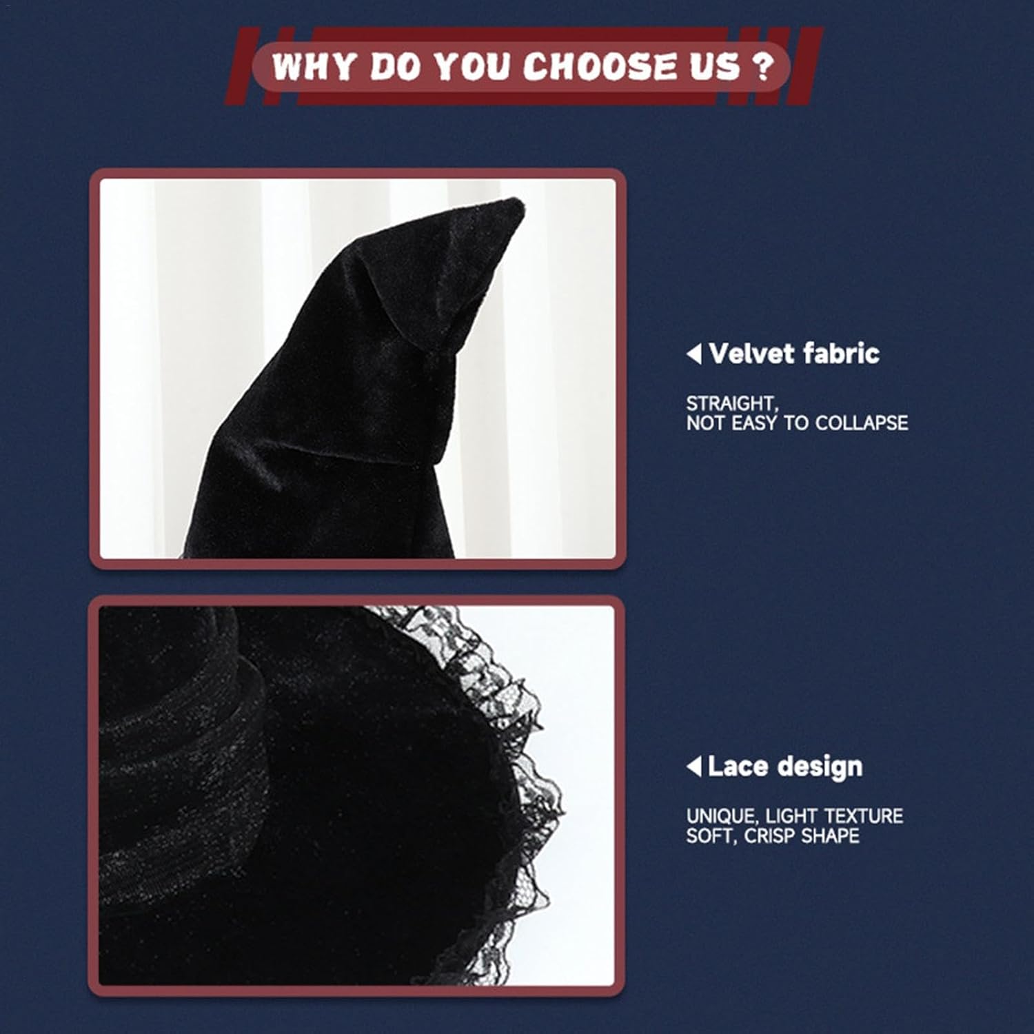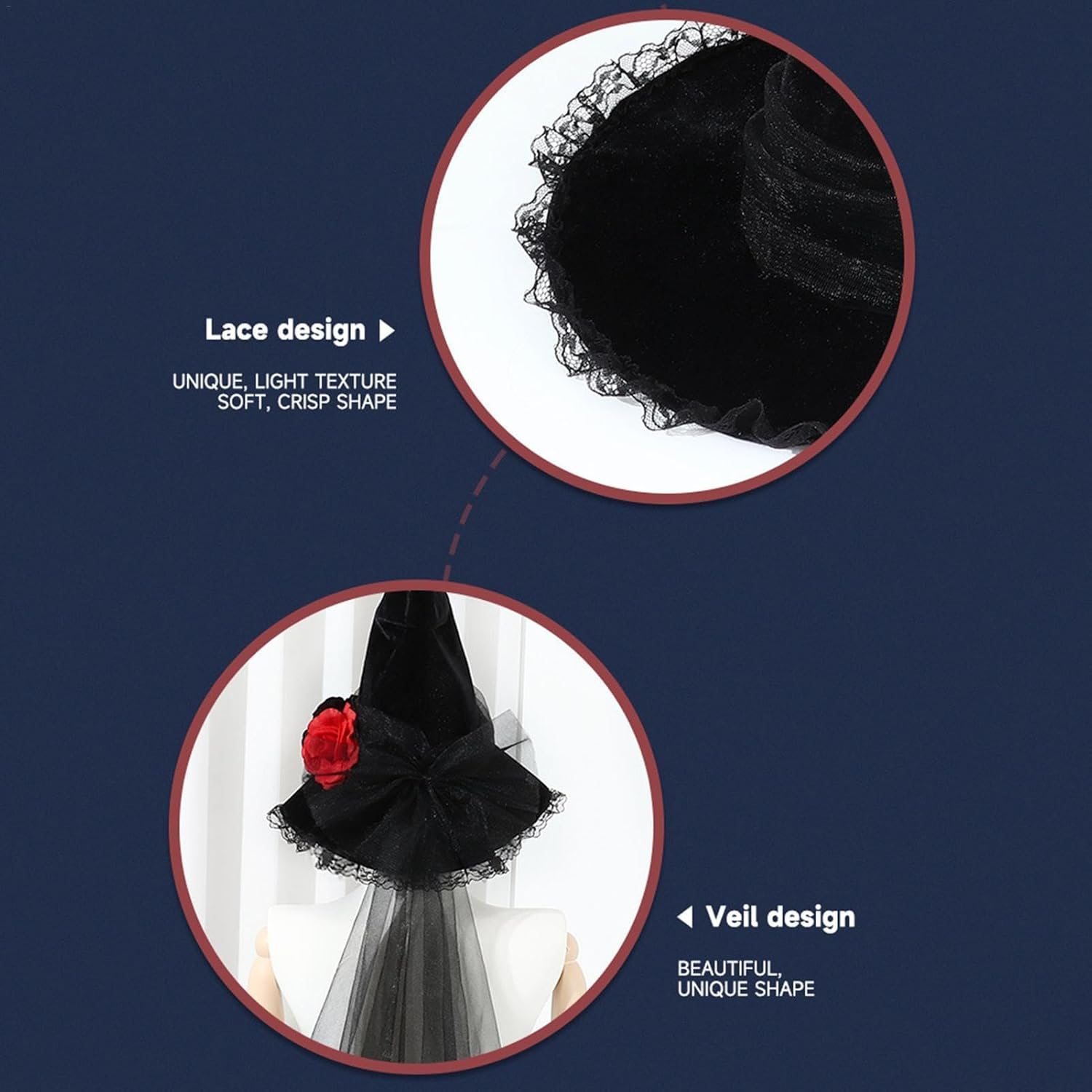 Descrizione prodotto Preparati ad Halloween con questo cappello da strega aerodinamico. Questo cappello è perfetto da indossare a lungo termine durante le esibizioni sul palcoscenico ed è decorato con fiori artificiali che migliorano immediatamente il tuo look. La clip sicura del cappello assicura che rimanga in posizione per tutta la notte. Vieni in vacanza e mostra il tuo lato magico con questo elegante accessorio. Nome del prodotto: cappello da strega Halloween : velluto. Dimensioni del prodotto: 40 x 32 cm. Peso del prodotto: 77 g. Elenco. 1 cappello da strega da donna di Halloween Avviso di sicurezza Inapplicabile