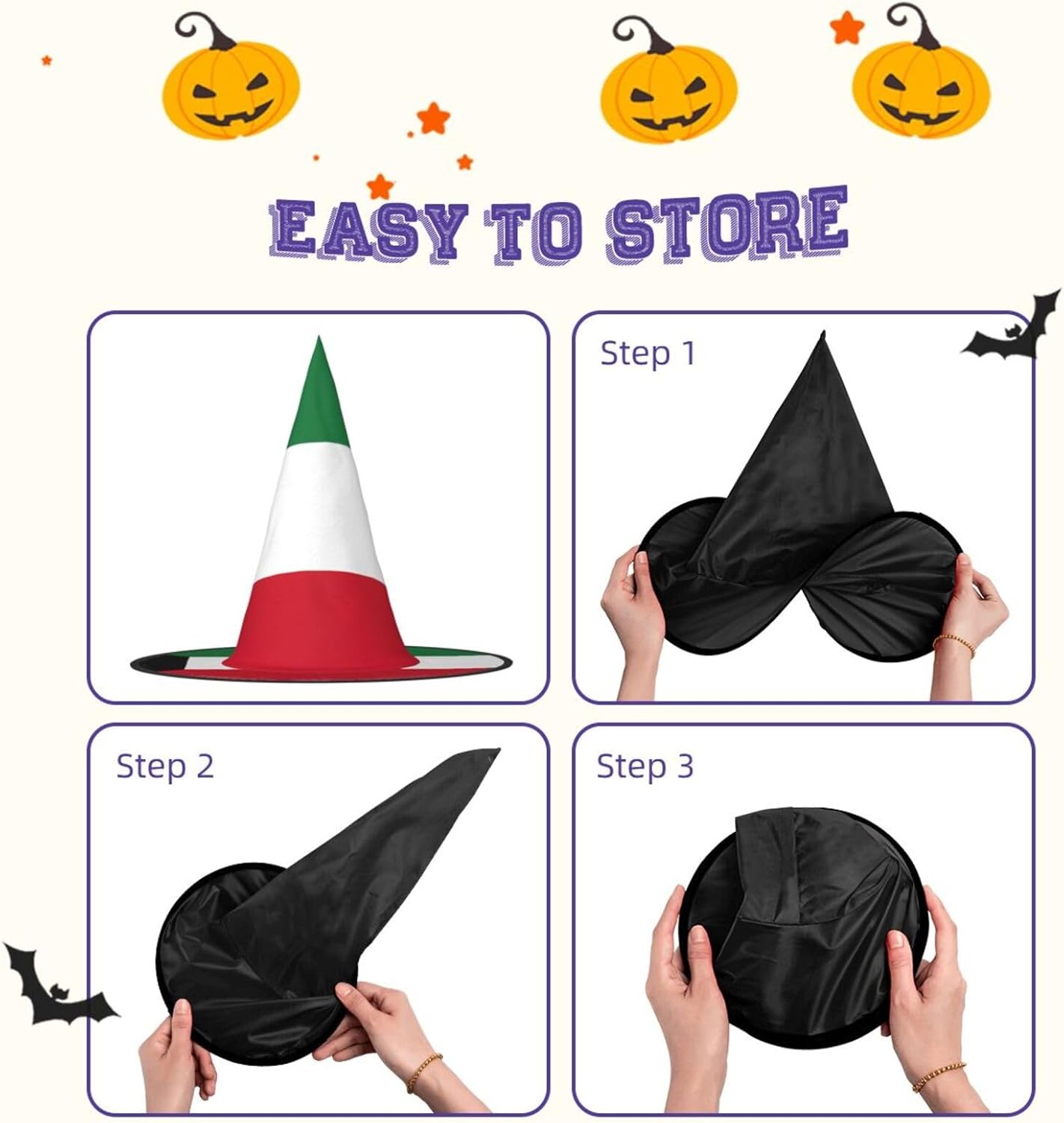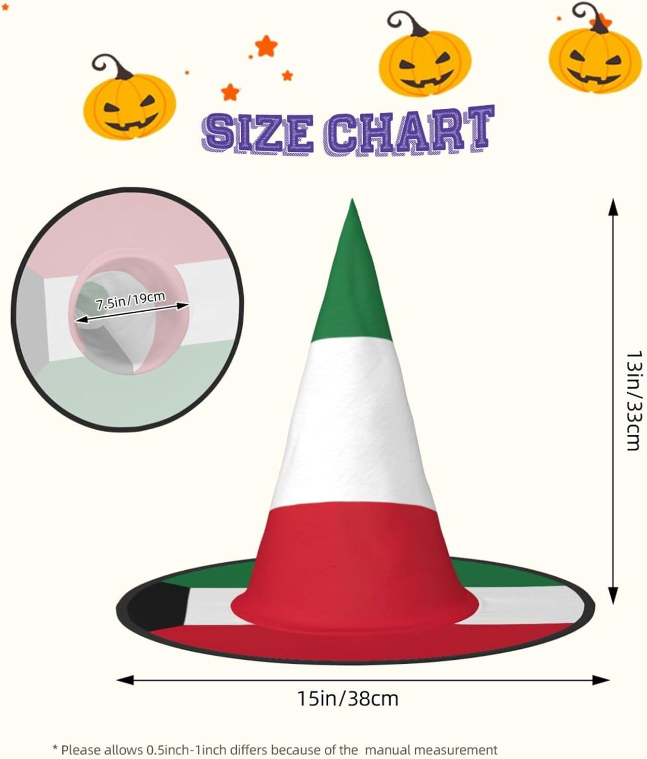 Questo cappello di Halloween con stampa bandiera del Kuwait è una miscela unica di comfort e stile, realizzato in tessuto Oxford. Il suo design compatto e leggero lo rende per portarlo in giro senza il peso. Ha una struttura unica; la parte superiore può essere ridotta e i bordi possono essere attorcigliati e piegati, consentendo una facile conservazione. Il cappello da strega con stampa bandiera kuwaitiana che si tratti di una festa di Halloween, in maschera o di gioco di ruolo, il nostro cappello è il tuo accessorio perfetto. Al centro dell'attenzione in qualsiasi evento di Halloween. È anche facile da pulire: lavabile in lavatrice o a mano, si asciuga rapidamente e facile da pulire. Scatena la tua strega interiore questo Halloween con i nostri cappelli da strega alla moda e divertenti! Nota: per una migliore cura, evitare la candeggina. Rendi indimenticabile questo Halloween con i nostri cappelli da mago per Halloween!