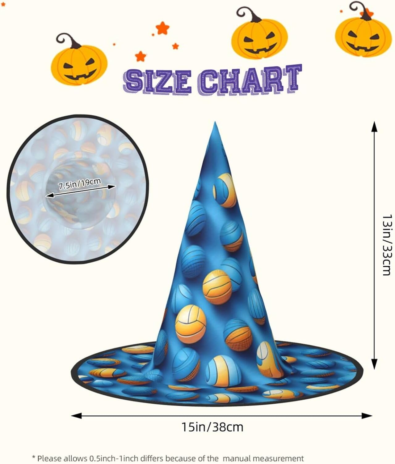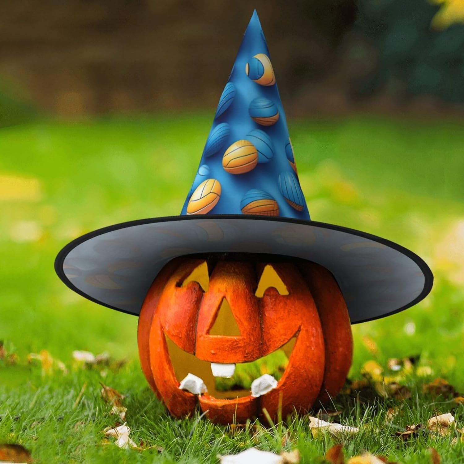 Cappello da strega spettrale per Halloween, con stampa pallavolo blu, cappelli da mago per Halloween, cappelli da festa di Halloween