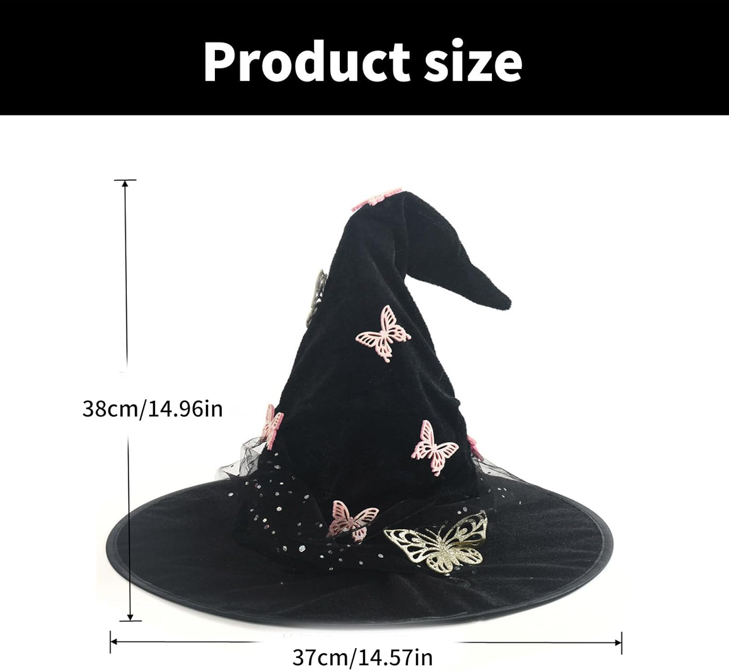 Cappello da strega con farfalla e lacci morbidi, da donna, accessorio per costume per Halloween ed eventi in maschera Caratteristiche: Il cappello da strega a farfalla aggiunge magici sensi di mistero. Composto da componenti di buona qualità, leggero e confortevole, durevole e resistente all'usura, e non si deforma dopo un uso a lungo termine. Misura regolabile, adatta a varie circonferenze della testa. Adatto per le donne che amano il trucco, i giochi di ruolo o partecipano a feste a tema, indipendentemente dall'età. Adatto per Halloween, feste di danza, feste di trucco e riunioni a tema, ti farà concentrare le feste. Specifiche tecniche: Colore: a scelta. Dimensioni: 37 x 38 cm. Componente: Dacrons La confezione include: 1 cappello da strega. Nota: 1. Si prega di considerare un margine di errore di 1-2 cm dovuto alla misurazione manuale. 2. A causa delle differenze tra i diversi monitor, l'immagine potrebbe non riflettere esattamente il colore reale.
