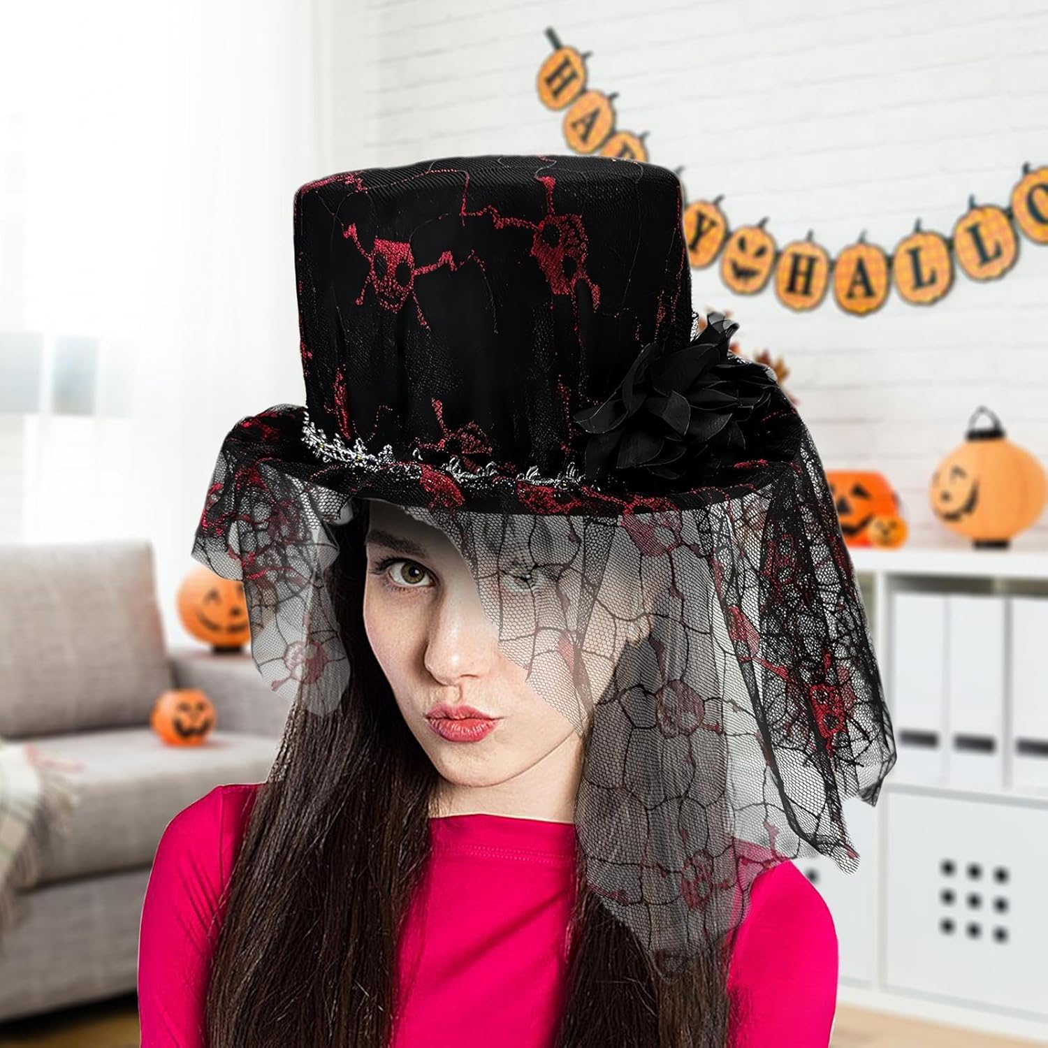 Il cappello fascinator a rete con teschio mantiene la sua forma con non deformazione, rendendolo adatto sia per la decorazione interna che esterna. Ideale per vacanze o feste di carnevale, questo cappello creerà un'atmosfera spaventosa che lascerà un'impressione duratura su tutti. Specifiche tecniche: Materiale: feltro + rete. Circonferenza della testa applicabile: circa 56-60 cm. Dimensioni del prodotto: come da immagine. Peso: circa 120 g. Contenuto della confezione: 1 cappello fascinator per Halloween