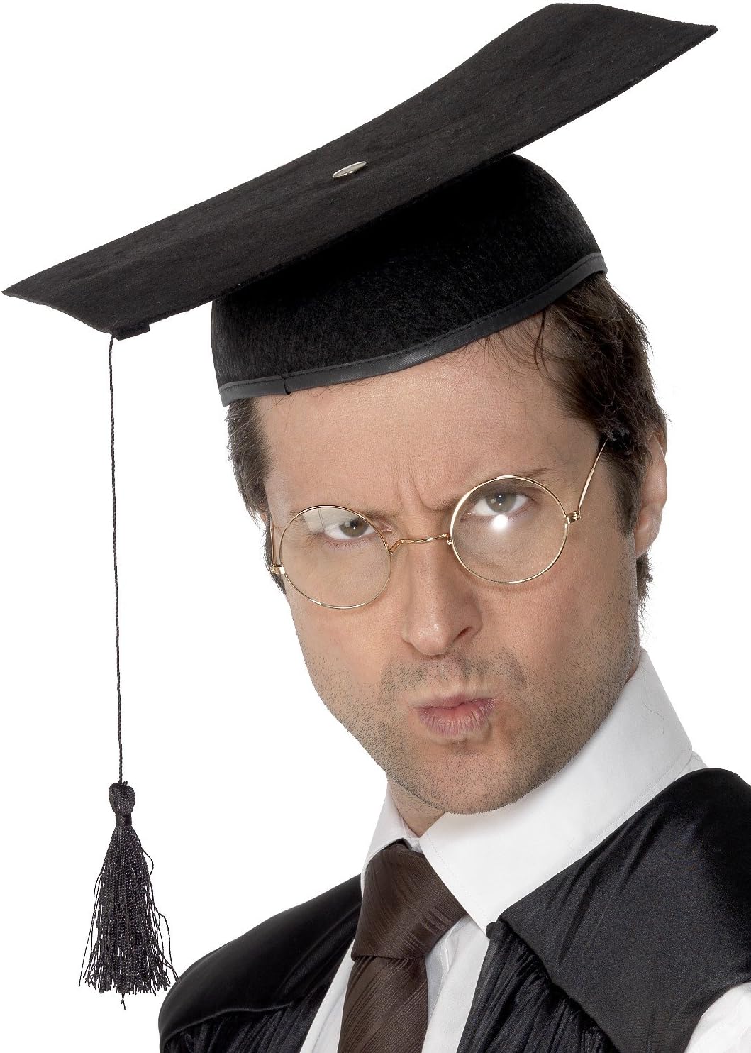 Comfortable mortar board hat. It was used for a Back To School karaoke theme. I added a rubber band, cut in half, and attached to both side, to hold it on. Worked great.