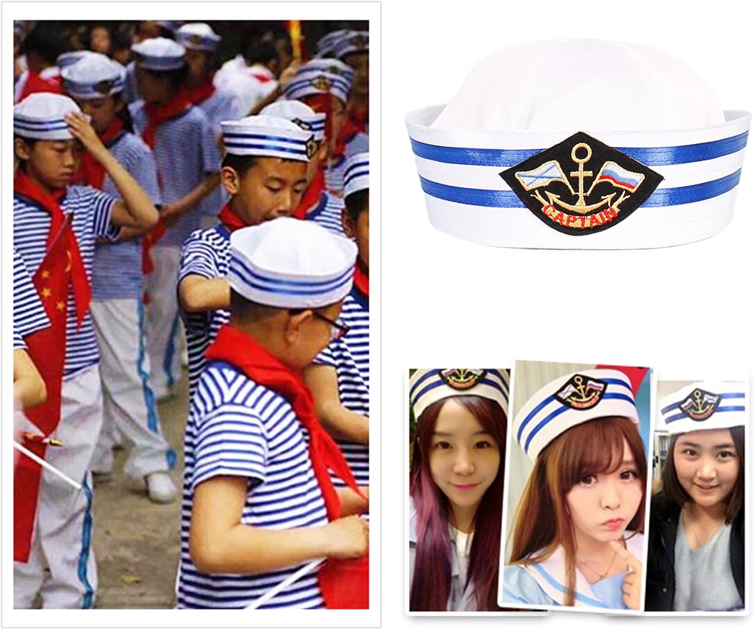 Cappello per bambini Gioco di ruolo Halloween Party Cosplay Sailor Top Hat Stage Performance Puntelli Navy Cappello Stage Copricapo Caratteristiche: Cappello da marinaio classico progettato Questo cappello da marinaio per bambini presenta un design classico con un triangulartop e una tesa da marinaio, aggiungendo un tocco alla moda e carino al tuo abbigliamento bambino. per spettacoli teatrali e feste in costume. Adatto per i bambini Specificamente progettato per i bambini, questo cappello da marinaio prende in considerazione le dimensioni della testa e il comfort. Realizzato con materiali morbidi e confortevoli come cotone e fibra di poliestere, offre una piacevole vestibilità per i bambini Uso versatile Ideale per attività all'aperto, vacanze al mare ed eventi a tema, questo cappello da marinaio leggero offre protezione solare per viso e occhi dei tuoi bambini. Blocca efficacemente i raggi UV dannosi, assicurando che il bambino si nasconda per attività all'aperto Che si tratti di un picnic, di una giornata in spiaggia o semplicemente di giocare all'aperto, questo cappello da marinaio per bambini è un accessorio indispensabile per non soloproteggere il bambino dal sole, ma aggiunge anche un tocco giocoso e carino al loro look. Migliorare il gioco di ruolo e le prestazioni Lascia che l'immaginazione del tuo bambino scorra selvaggia con questo cappello da marinaio. per spettacoli scolastici, spettacoli teatrali e feste a tema, permette di svolgere il ruolo di marinaio, ufficiale della marina o qualsiasi altro personaggio legato al mare. Guarda mentre portano dramma ed eccitazione alle loro esibizioni. Specifiche tecniche: Dimensioni del prodotto: come da immagine. poliestere. Opzione: 3 opzionali come mostrato nelle immagini, si prega di selezionare la preferenza La confezione include: 1 cappello da marinaio per bambini. Nota: Considerare un margine di errore di 1-2 cm dovuto alla misurazione manuale. A causa della differenza tra i diversi monitor, l'immagine potrebbe non riflettere esattamente il colore dell'articolo.