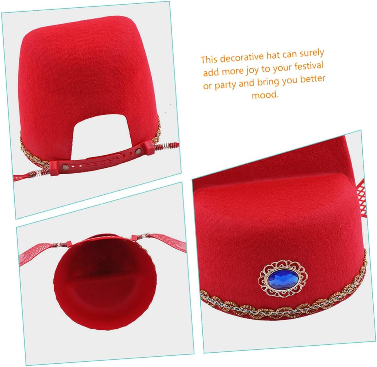 Cappelli alla moda: materiale in feltro, comodo da indossare a lungo, leggero, non avrà troppo peso sulla testa, cappello cosplay. Copricapo da festa: questo cappello è facile da indossare e da togliere, non facile da cadere, puoi indossarlo con tranquillità, copricapo festivo. Cappello retrò: brillante, molto elegante e raffinato, buon accessorio per costumi quando per spettacolo di opera antica , attira più attenzione, copricapo in stile cinese. Cappello divertente: sperimenta una cultura diversa con questo cappello , aggiungi anche più gioia alla festa e alla celebrazione del festival, cinesi. Cappello in stile tradizionale: può essere ampiamente applicato per l'uso quotidiano, feste, balli, celebrazioni, capodanno, carnevale, cosplay, spettacoli di danza e così via, berretto da sposa cinese.