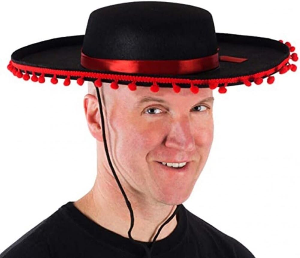 Il cappello sombrero messicano è realizzato in tessuto, con bordo pompon rosso. Mostra il stile spagnolo con questo comodo cappello sombrero per uomo o . Traspirante e leggero, un bel regalo condividere con tua famiglia. Questo cappello è molto adatto per feste di carnevale, feste festive, feste a tema messicano e altro. Il nostro cappello sombrero messicano è un accessorio ideale per costumi in maschera uomo o .