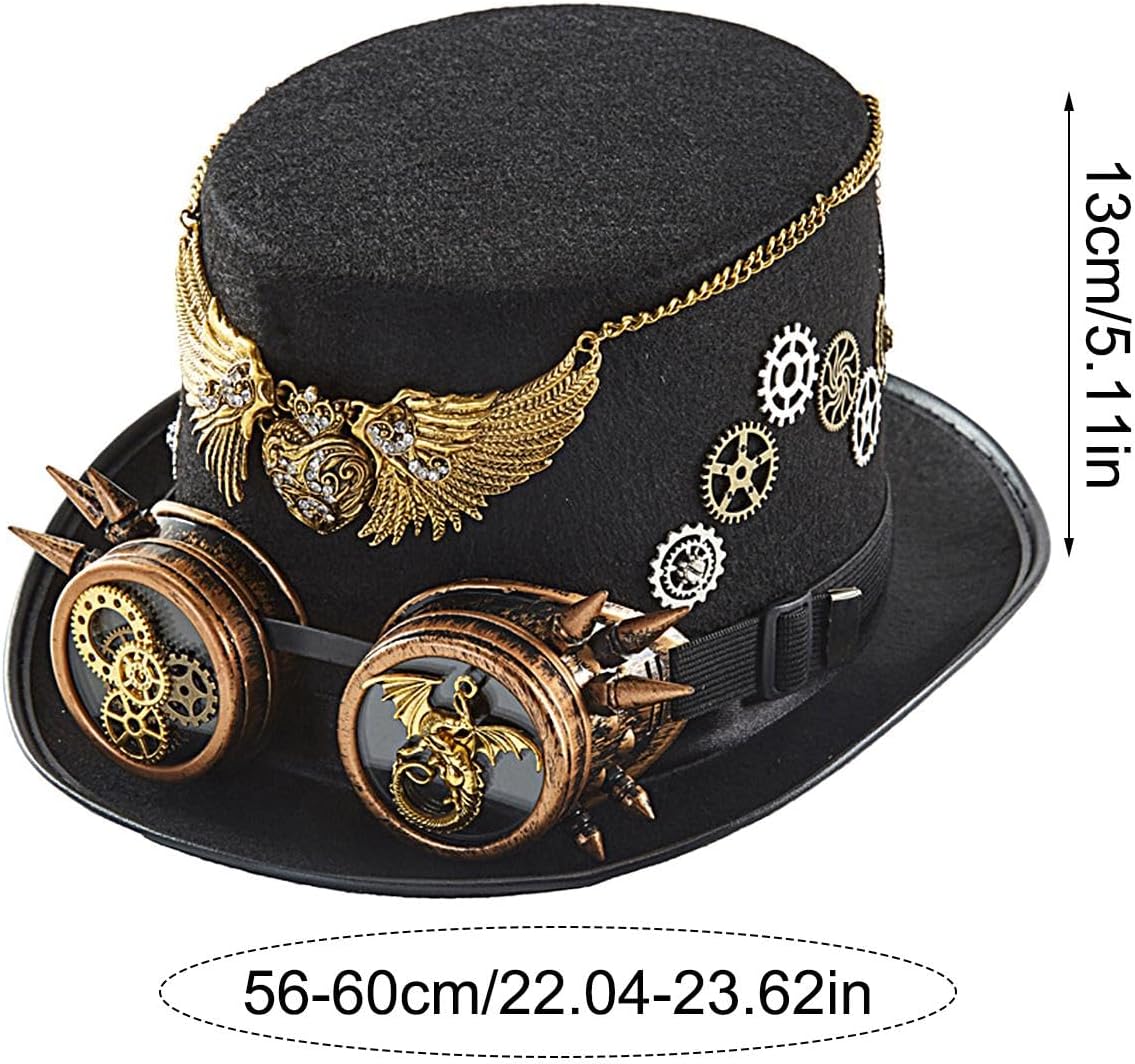Descrizione prodotto Il cappello Steampunk con occhiali è realizzato in materiale di feltro ad alta densità. Accessorio ideale per costumi Steampunk, assicura una vestibilità comoda e calda. È un regalo pratico per feste in costume di Halloween e celebrazioni festive. Specifica: Nome: cappello Steampunk con occhiali Materiale: feltro + raccordi in metallo Dimensioni: altezza del cappello di circa 13 cm/5,12 pollici adatto per circonferenza a testa di circa 56-60 cm/22,05-23,62 pollici Peso: circa 220 g Lista imballaggio: 1 * Attrezzatura per cosplay Steampunk Nota: A causa e diverse impostazioni di illuminazione e schermo, il colore 'articolo potrebbe essere leggermente diverso dall'immagine. A causa e diverse misurazioni manuali, si prega di consentire una differenza di dimensioni di 1-2 cm. Avviso di sicurezza Non applicabile