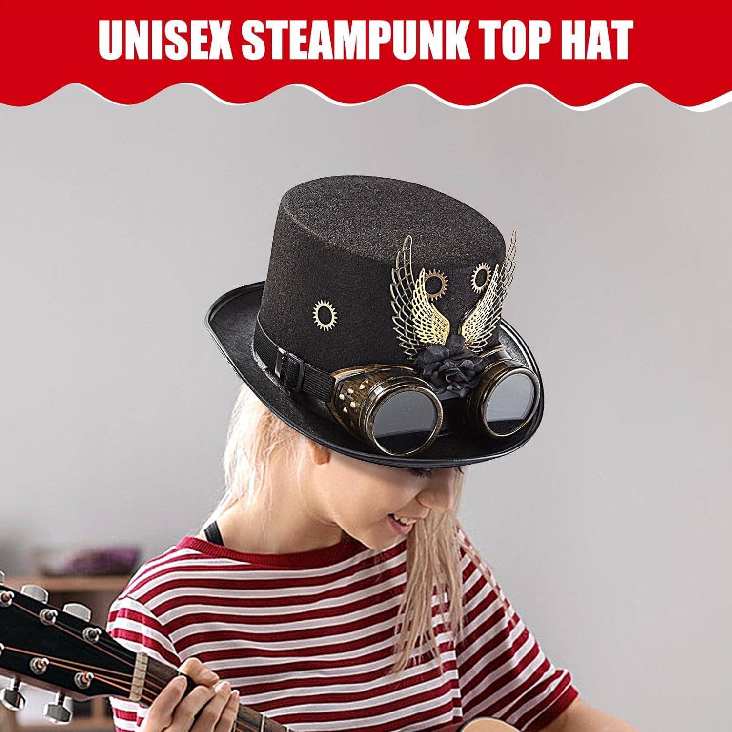 Realizzato con materiali resistenti all'usura e progettato per garantire una vestibilità comoda e perfetta. Caratterizzato da ingranaggi retrò, questo cappello è perfetto per feste in maschera o uso quotidiano. È anche pratico e premuroso per qualsiasi appassionato di steampunk. Materiale: feltro + accessori in metallo. Dimensioni del prodotto: altezza del cappello circa 13 cm, adatto per circonferenza 56-58 cm. Peso: circa 270 g. elenco: 1 cappello a cilindro steampunk