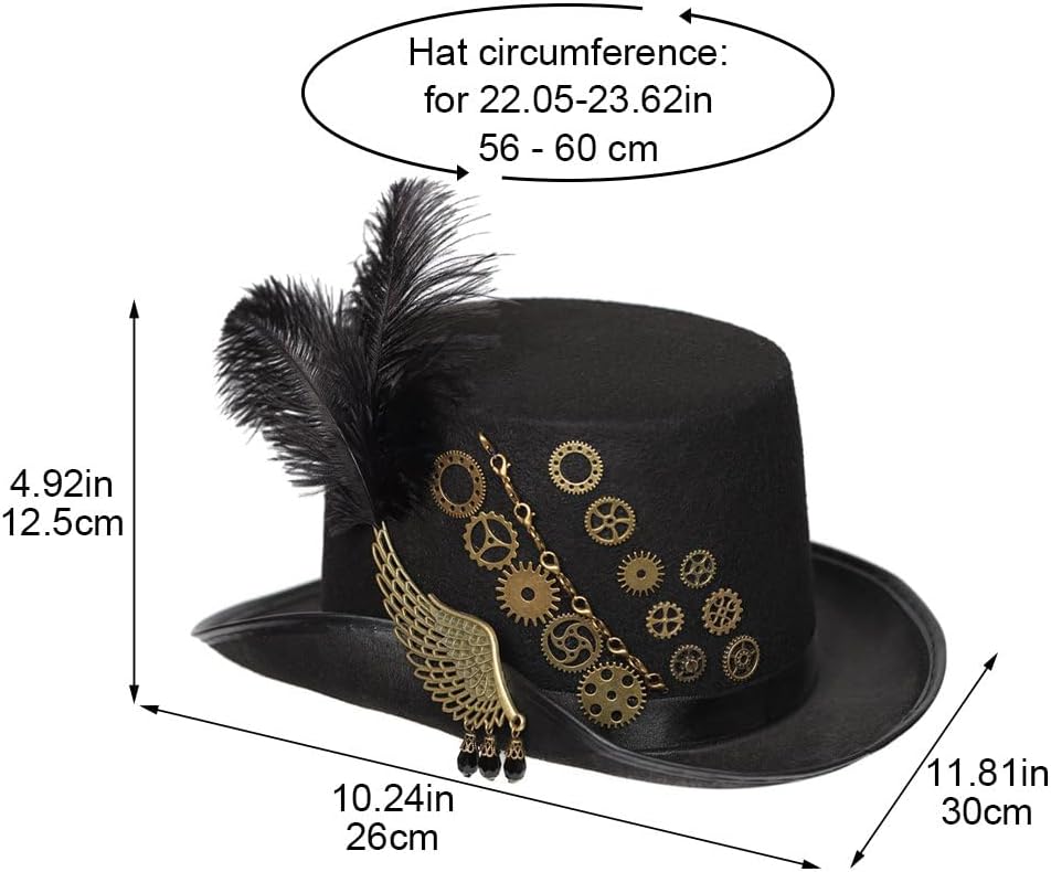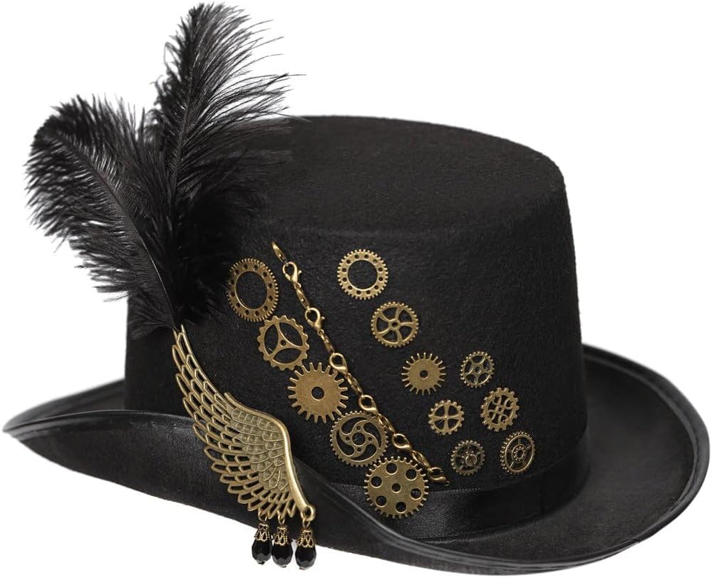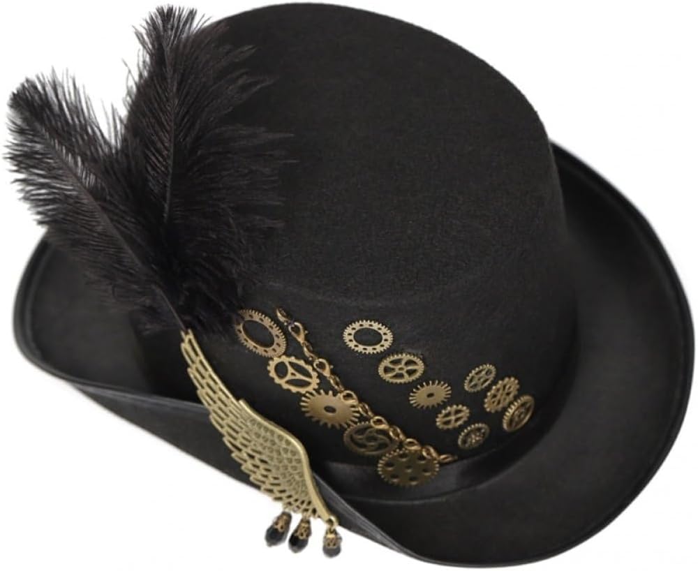 Funzione decorativa: feste in maschera, carnevale, discoteca, feste di Halloween e Natale, feste di compleanno, feste di cosplay, intrattenimento, cerimonia, narrazione, danza, talk show, ballo di fine anno/ritorno a scuola, . Adatto per lunghi o corti, Appare carnagione chiara, il viso appare piccolo e delicato. Autentico stile Steampunk: questo cappello a cilindro cattura l'essenza della moda steampunk con i suoi ingranaggi unici e l'ornamento di piume. Cappello a tesa larga per completare tutte le forme del viso. Eccezionale effetto fotogenico, buon effetto di ripresa. Vestibilità comoda: progettato pensando comfort, questo cappello offre una vestibilità comoda, rendendolo un piacere indossare per lunghi periodi.