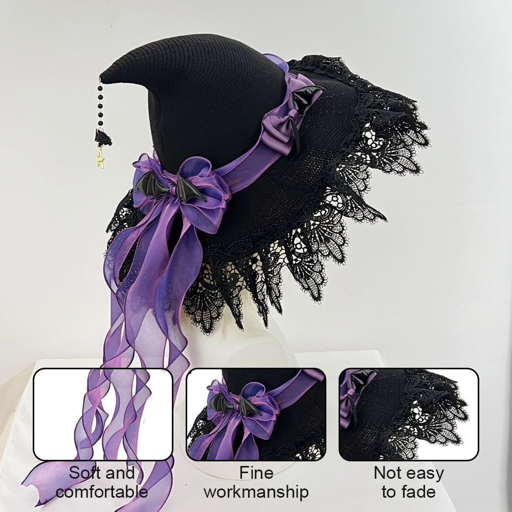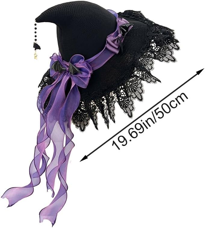 【Ampiamente utilizzato】I cappelli strega originali sono perfetti per Halloween, feste, Natale, carnevale, mascherate, . per migliorare l'atmosfera misteriosa del evento e possono anche essere usati come cestini per dolcetto o scherzetto. 【Accessorio versatile per cosplay】 Ideale per streghe, maghi e costumi a tema fantasy, questo cappello strega nero si abbina perfettamente ad abiti strega neri, abiti Lolita o altri abiti gotici, rendendolo un'aggiunta indispensabile alla tua collezione di costumi. 【Materiale】Realizzato in tessuto stabile e leggero con dettagli in pizzo meticolosi e un nastro fluente, questo cappello mantiene forma e stile, offrendo un accessorio affidabile e riutilizzabile per molteplici eventi e occasioni. 【Cappello mago】Il cappello mago può essere appeso ovunque si voglia decorare per Halloween. Adatto a cappelli strega e uomo, può aiutare a creare un'atmosfera spettrale per le feste di Halloween. 【Vestibilità perfetta per tutti】Progettato per adattarsi comodamente alla maggior parte delle taglie di testa degli adulti, questo cappello strega nero per adulti è un must per ogni amante di Halloween.