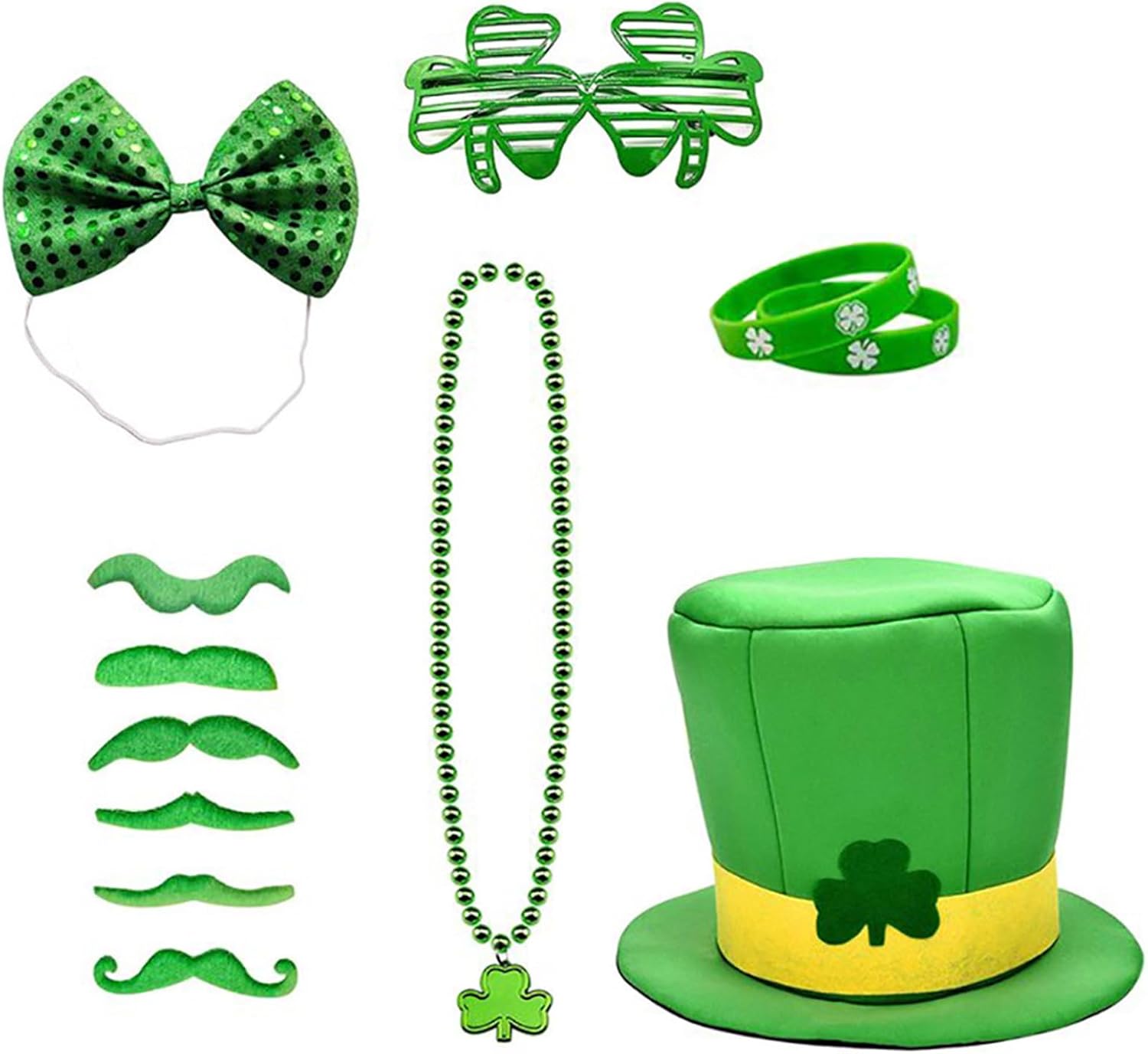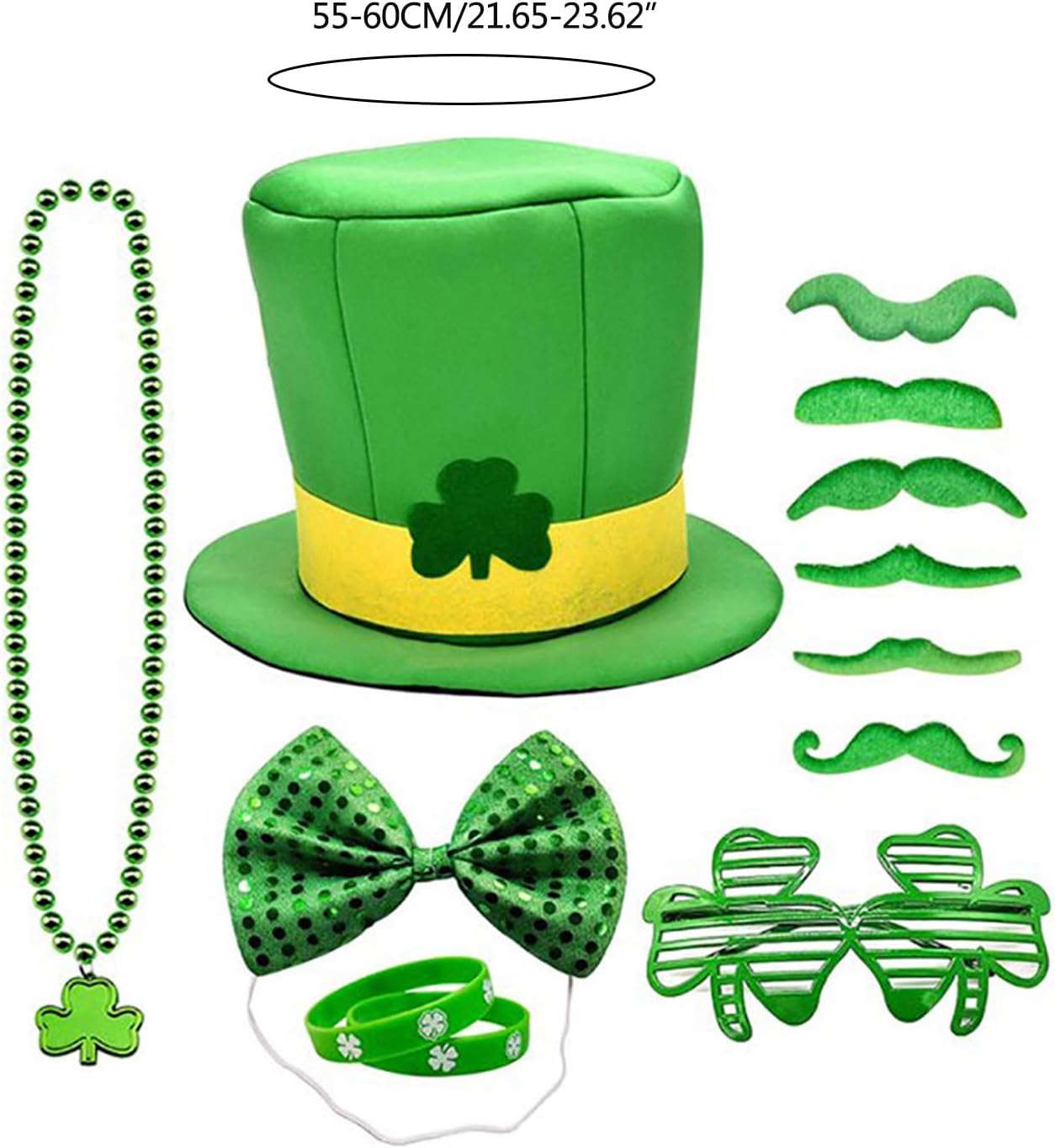 Caratteristiche: Distinguiti dalla massa con questo set di fascia per capelli, collana, braccialetto e occhiali alla moda, un must per ogni celebrazione Adatto a persone di tutte le età che vogliono aggiungere un tocco di moda al proprio outfit. Per varie occasioni come compleanni, feste a tema o riunioni informali, questo set aggiunge facilmente un tocco festoso a qualsiasi evento. Diventa creativo con questo set versatile: usalo come accessorio o semplicemente per evidenziare il tuo. La confezione include: 1 cappello, 1 paio di occhiali, 1 papillon, 2 braccialetti, 1 collana, 6 baffi finti. Caratteristiche: : tessuto. Circonferenza testa consigliata: 50-60 cm. Colore: verde. Nota: 1. Si prega di consentire un errore di 1-2 cm dovuto alla misurazione manuale. Assicurati che non ti dispiaccia prima di ordinare. Il colore dell'articolo può variare dalla foto a seconda delle impostazioni di visualizzazione e luminosità del computer. Confezione: 1 set di forniture per feste.