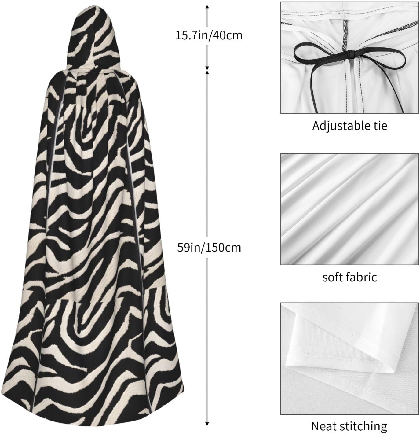 Cappotto con cappuccio da stregone di Halloween Strega, Felpe con cappuccio di Natale Cape Cosplay per Moda Uomo Donna Feste Bomboniere Feste Forniture Vestiti Costume - Animale Zebra