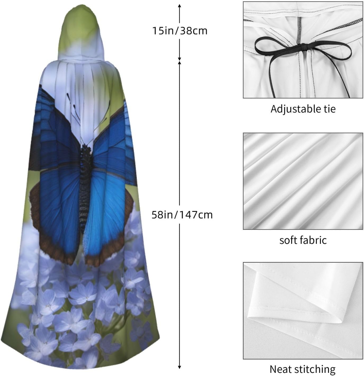 Il design senza cerniera, abbinato a un grande mantello con cappuccio e cravatta al collo, migliora il tuo mistero mantenendoti comodo con il suo tessuto non prurito. Con una lunghezza di 147 cm, larghezza di 154 cm e un'altezza del cappuccio di 38 cm, il nostro mantello con cappuccio blu con stampa a farfalla offre una copertura completa, assicurandoti di distinguerti in ogni occasione. Vari eventi come Halloween, cosplay, costumi da palcoscenico, feste a tema, balli, convegni di fumetti e molto altro ancora, il nostro mantello è versatile e conveniente. Facile da mantenere e di lunga durata, il nostro mantello blu con cappuccio con stampa farfalla è lavabile in lavatrice e lavabile a mano. Con un design neutro, il nostro mantello è perfetto per uomini e donne.