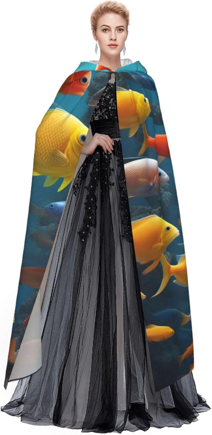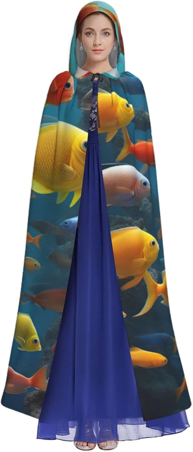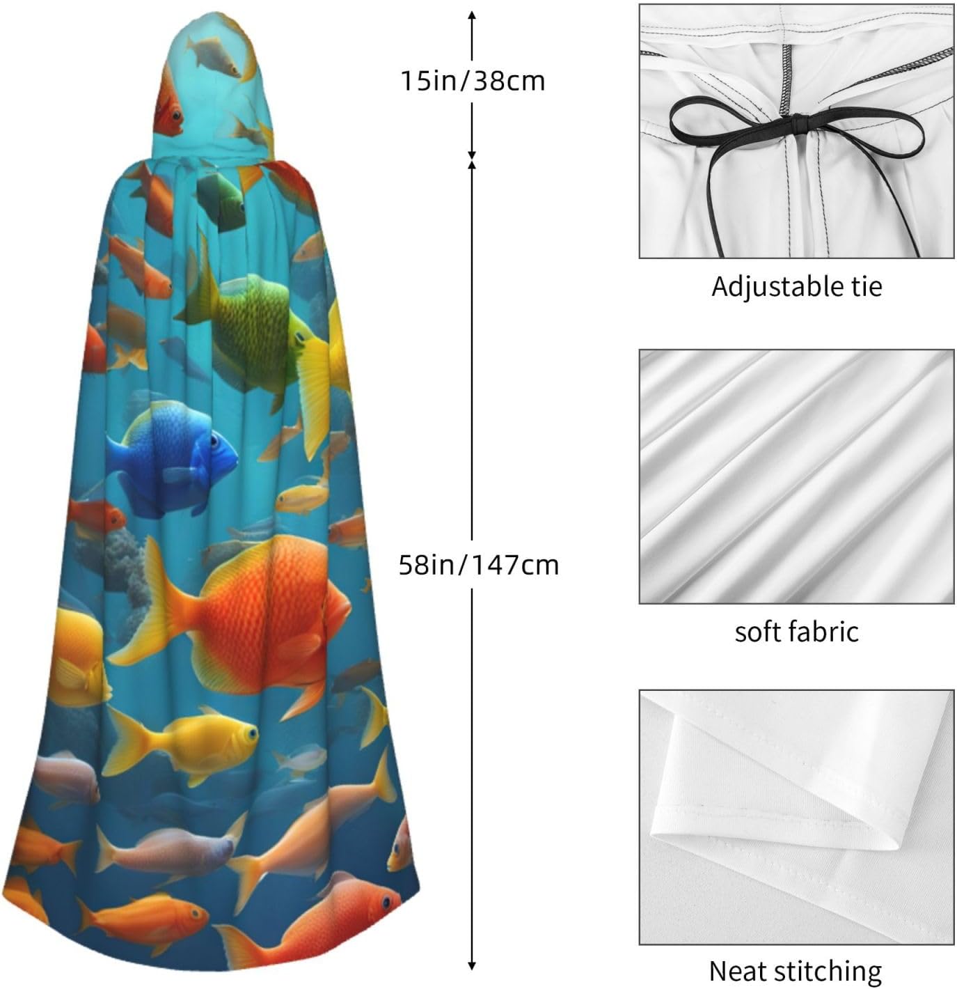 Il design senza cerniera, abbinato a un grande mantello con cappuccio e cravatta al collo, migliora il tuo mistero mantenendoti comodo con il suo tessuto non prurito. Con una lunghezza di 147 cm, larghezza di 154 cm e un'altezza del cappuccio di 38 cm, il nostro mantello con cappuccio colorato con stampa di pesci offre una copertura completa, assicurandoti di distinguerti in ogni occasione. Vari eventi come Halloween, cosplay, costumi da palcoscenico, feste a tema, balli, convegni di fumetti e molto altro ancora, il nostro mantello è versatile e conveniente. Facile da mantenere e di lunga durata, il nostro mantello con cappuccio colorato con stampa di pesci è lavabile in lavatrice e lavabile a mano. Con un design neutro, il nostro mantello è perfetto per uomini e donne.