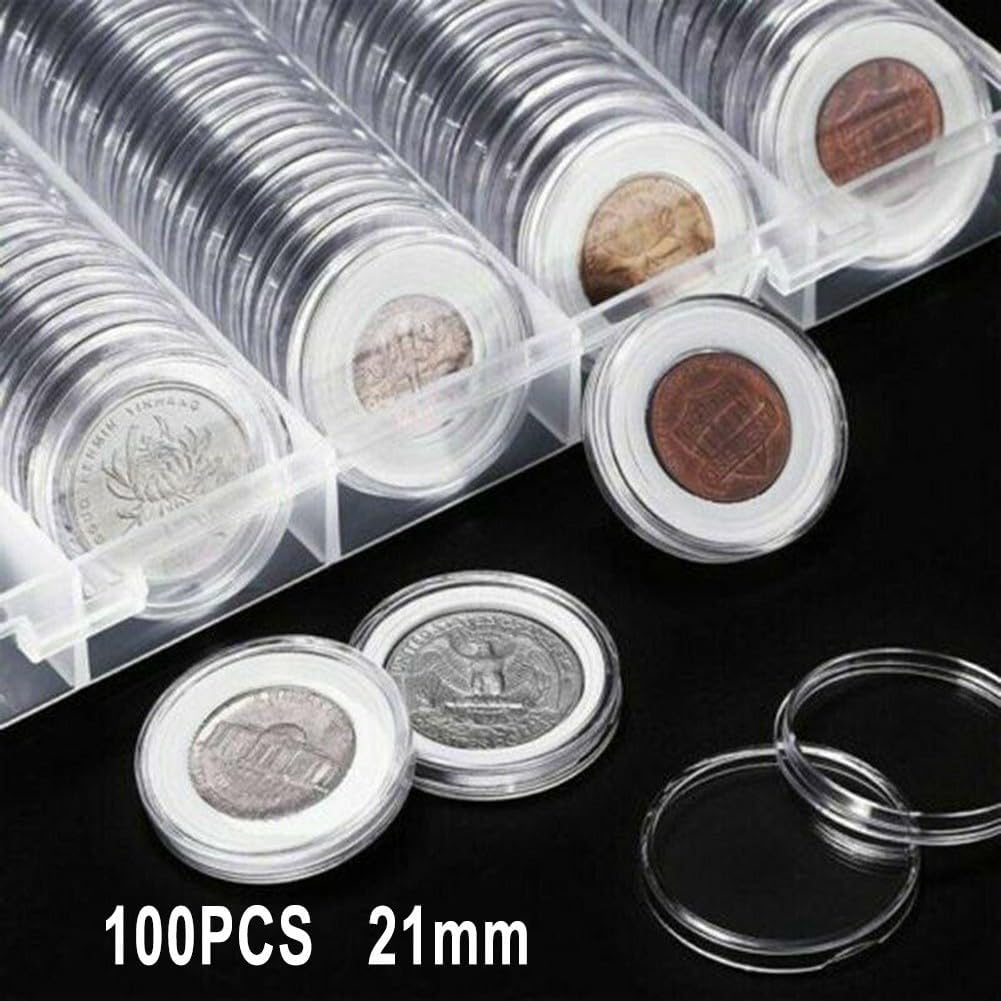 Set di capsule per monete: questa confezione contiene 100 capsule di plastica trasparente che forniscono un'eccellente protezione per i tuoi cari. Mostra la tua collezione: il design trasparente a doppio guscio consente di visualizzare entrambi i lati della moneta senza sforzo, ideale per i collezionisti. [SICURO E ACCESSIBILE] Progettato per la sicurezza e la facilità d'uso, ogni capsula si apre e si blocca senza problemi per una manipolazione senza problemi. Robuste e trasparenti: realizzate con materiali super spessi e una finitura ad alta trasparenza, queste custodie sono costruite per durare migliorando al contempo il fascino visivo del tuo . [Controllo delle dimensioni] si verifica le dimensioni della moneta prima dell'acquisto per ottenere la migliore vestibilità per vari tipi tra cui rame, argento, commemorativo e oro.