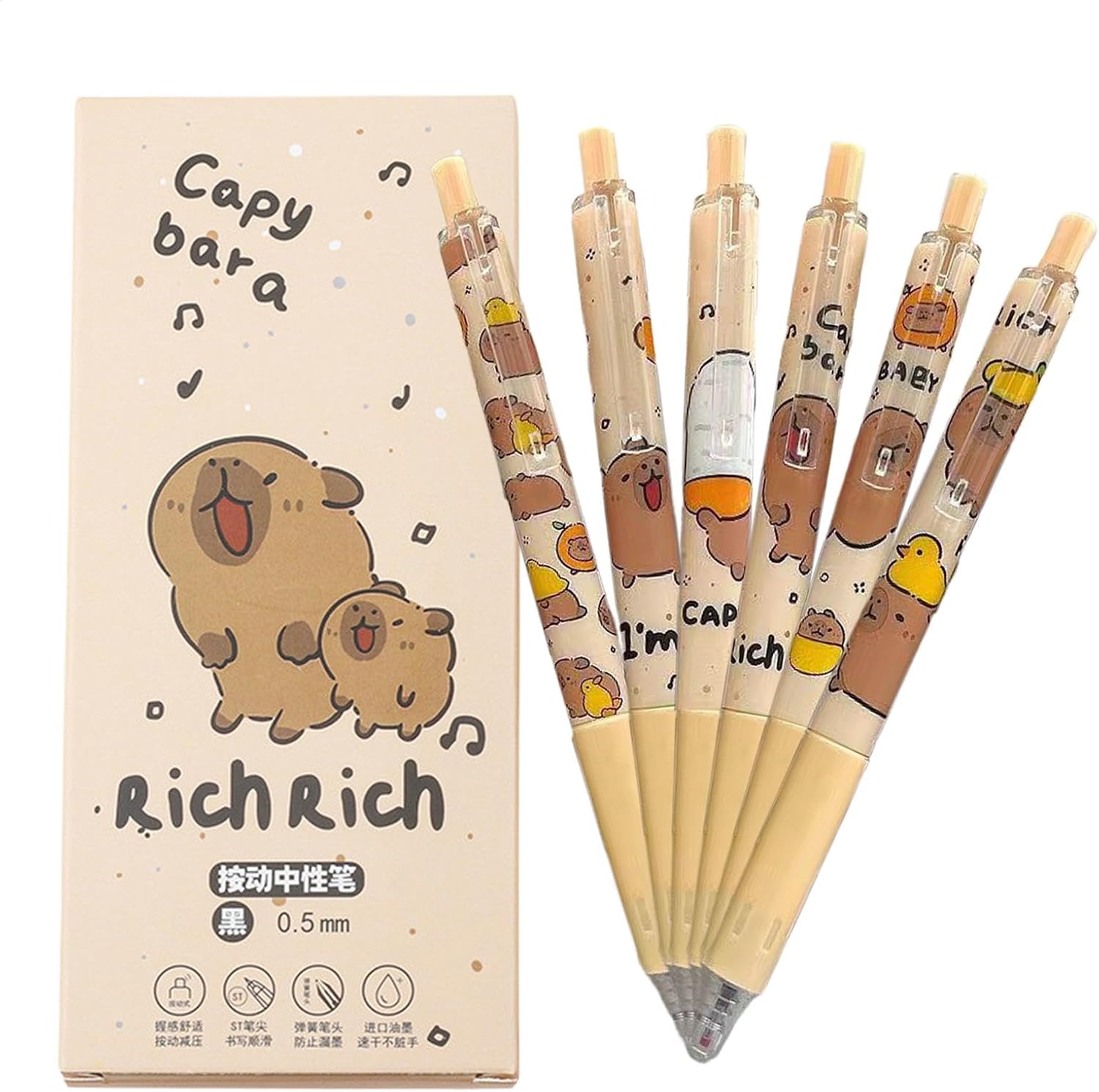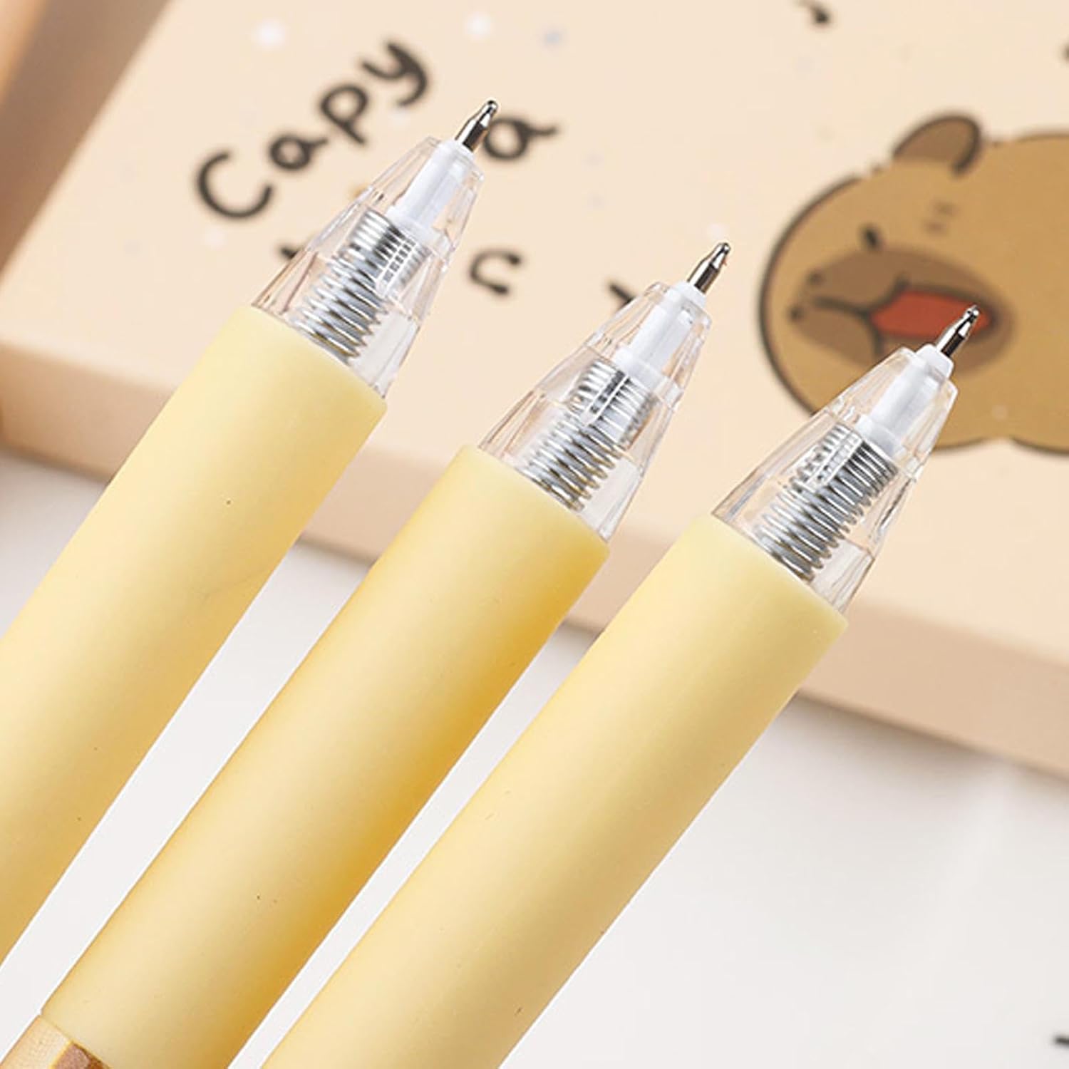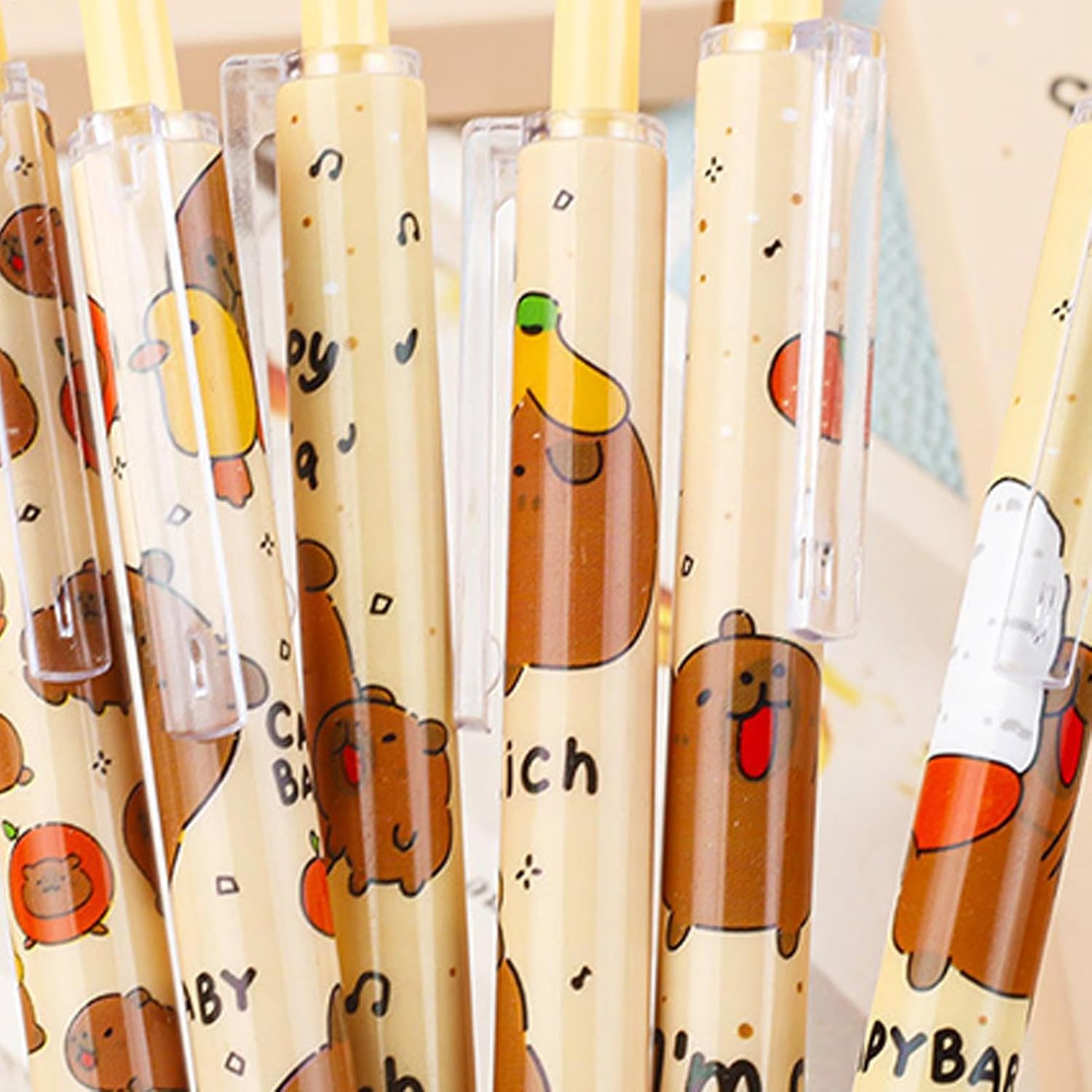 Punta precisa: migliora la tua esperienza di scrittura con le penne capibara. Con una punta fine da 0,5 mm, queste penne offrono una scrittura liscia e precisa per prendere appunti in modo chiaro e senza sforzo Simpatico design Capybara: caratterizzato da un design carino e divertente che stimola l'interesse di apprendimento, il suo colore brillante affascina e attira l'attenzione dei bambini Design retrattile: con una pressa per erogare il nucleo, queste penne Capybara sono facili e comode da usare, adatte per studenti in classe e a casa Alta durata: realizzate con materiali robusti, le nostre penne capibara sono progettate per garantire la sicurezza e la salute dei tuoi bambini promuovendo la loro creatività Inchiostro ad asciugatura rapida: l'inchiostro ad asciugatura rapida delle penne Capybara manterrà i compiti in ordine con una scrittura senza sforzo. Goditi un'esperienza di scrittura fluida ed evita sbavature o macchie per una finitura pulita