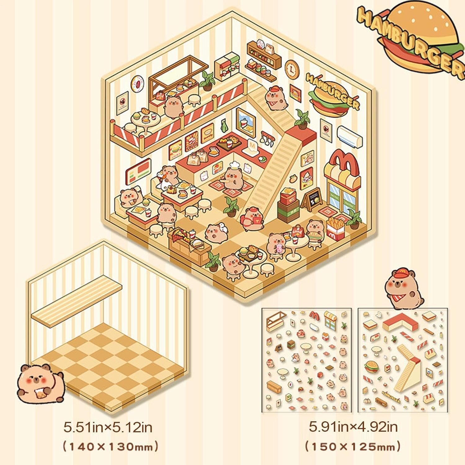 MOLTO PIÙ DURATA: questi robusti adesivi in miniatura in miniatura in PET hanno una forte aderenza, si strappano facilmente e non lasciano residui dopo la rimozione per una decorazione bella ed elegante su tutte le superfici Ispira l'espressione creativa: a seconda delle tue preferenze e della tua creatività, gli adesivi in miniatura della scena ti consentono di sviluppare il tuo talento artistico fornendo diversi elementi creativi. Combinare, collegare, sovrapporre e progettare facilmente la tua scena unica Innovativa scena adesiva Capybara: questi adesivi di scena in miniatura rappresentano il ristorante di fast food e termale Capibara con temi mozzafiato e design unico e stimolano la creatività con due opzioni a tema tra cui scegliere. Ideale per artigiani e hobbisti Capybara adesivi in miniatura per scena, lascia libero sfogo alla creatività del tuo bambino con i nostri adesivi in miniatura. Un'opzione di presentazione perfetta per feste dei bambini, compleanni e feste, che offre un'esperienza emozionante e aumenta il divertimento del gioco Ampia gamma di applicazioni: aumenta la tua creatività integrando i nostri adesivi in miniatura nella tua espressione artistica. Ideali per abbellire computer portatili, notebook e custodie per cellulari, questi adesivi aderiscono perfettamente a tutte le superfici lisce. Le molteplici possibilità di utilizzo stimolano la vostra immaginazione e vi aprono ancora più possibilità di decorazione