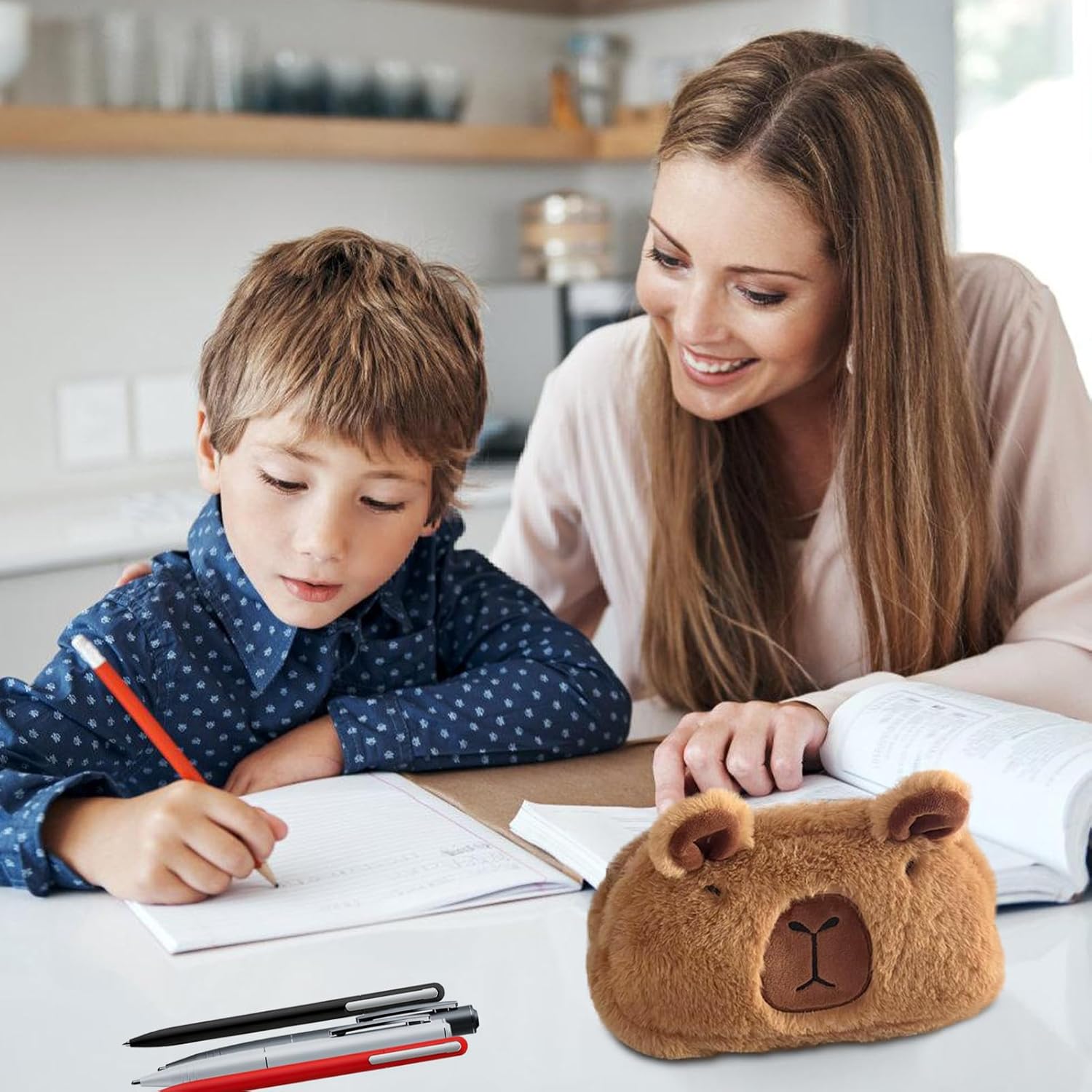 Forma Capybara: tieni le tue penne al sicuro in questo soffice astuccio a forma di maialino d'acqua. Il materiale morbido e accogliente aggiunge un tocco di fascino alla tua collezione di cancelleria. Ampio spazio: con una lunghezza di 7 pollici, l'astuccio Capybara offre spazio sufficiente per contenere fino a 18 penne o altre penne. Non importa se sei a scuola, al lavoro o in viaggio. Materiale resistente: l'astuccio Capybara ha una cerniera in metallo che offre durata e protezione per la tua cancelleria. Aprire e chiudere facilmente la custodia. Uso multifunzionale: aggiungi un po' di carineria alla tua cancelleria con questo astuccio Capybara. Non è solo un modo per riporre gli oggetti di scrittura, ma anche una divertente decorazione da scrivania o un giocattolo. Regalo per l'infanzia: delizia i tuoi piccoli con questo adorabile zaino di peluche, un adorabile regalo per ogni occasione. Offre molto spazio per i tuoi effetti personali, è morbido, avvolgente e perfetto per giocare.