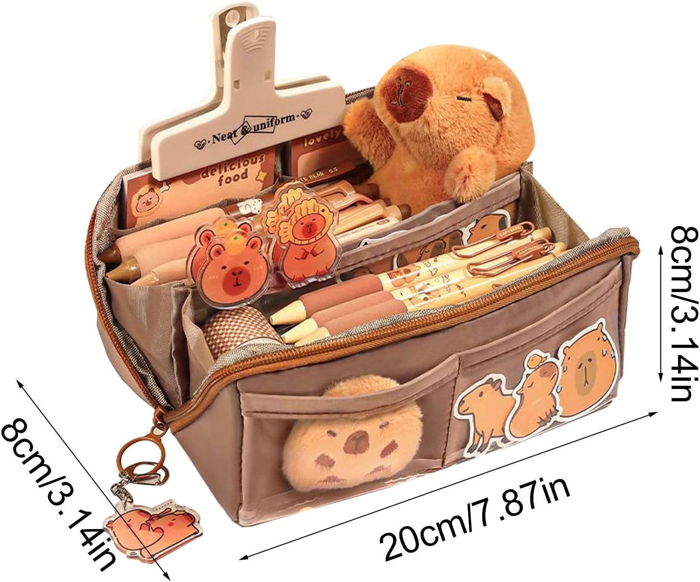 Design ad ampia apertura: caratterizzato da un design ad ampia apertura, questo astuccio Capybara semplifica il processo di organizzazione generale, accelera l'accesso alle necessità quotidiane e ti assicura di poter trovare rapidamente ciò di cui hai bisogno, consentendo agli utenti di godere della comodità quando prendi e metti gli oggetti Facile per gli utenti: questo astuccio Capybara offre spazio esclusivo per ogni piccolo oggetto; il suo layout consente di classificare in modo flessibile in base alle esigenze personali, mantenendo gli oggetti nella borsa in ordine e migliorando l'efficienza con sacchetti multistrato integrati accuratamente pianificati, rendendolo comodo da usare Ben fatto: lo strato esterno è realizzato in tessuti morbidi e resistenti, garantendo che si mantenga in buone condizioni dopo un uso a lungo termine; comodo al tatto e resistente all'usura, resistente ai graffi Facile da trasportare: sia nel campus, negli studi o in viaggio, questo astuccio Capybara è facilmente gestibile per soddisfare le esigenze di trasporto in diversi scenari Ampia applicazione: questo astuccio Capybara passa senza soluzione di continuità dall'organizzazione di strumenti di bellezza a una custodia da viaggio compatta o uno spazio indispensabile per lo studio. Il suo design alla moda e la funzionalità senza sforzo lo rendono un compagno di lavoro affidabile, facile da usare e trasportare