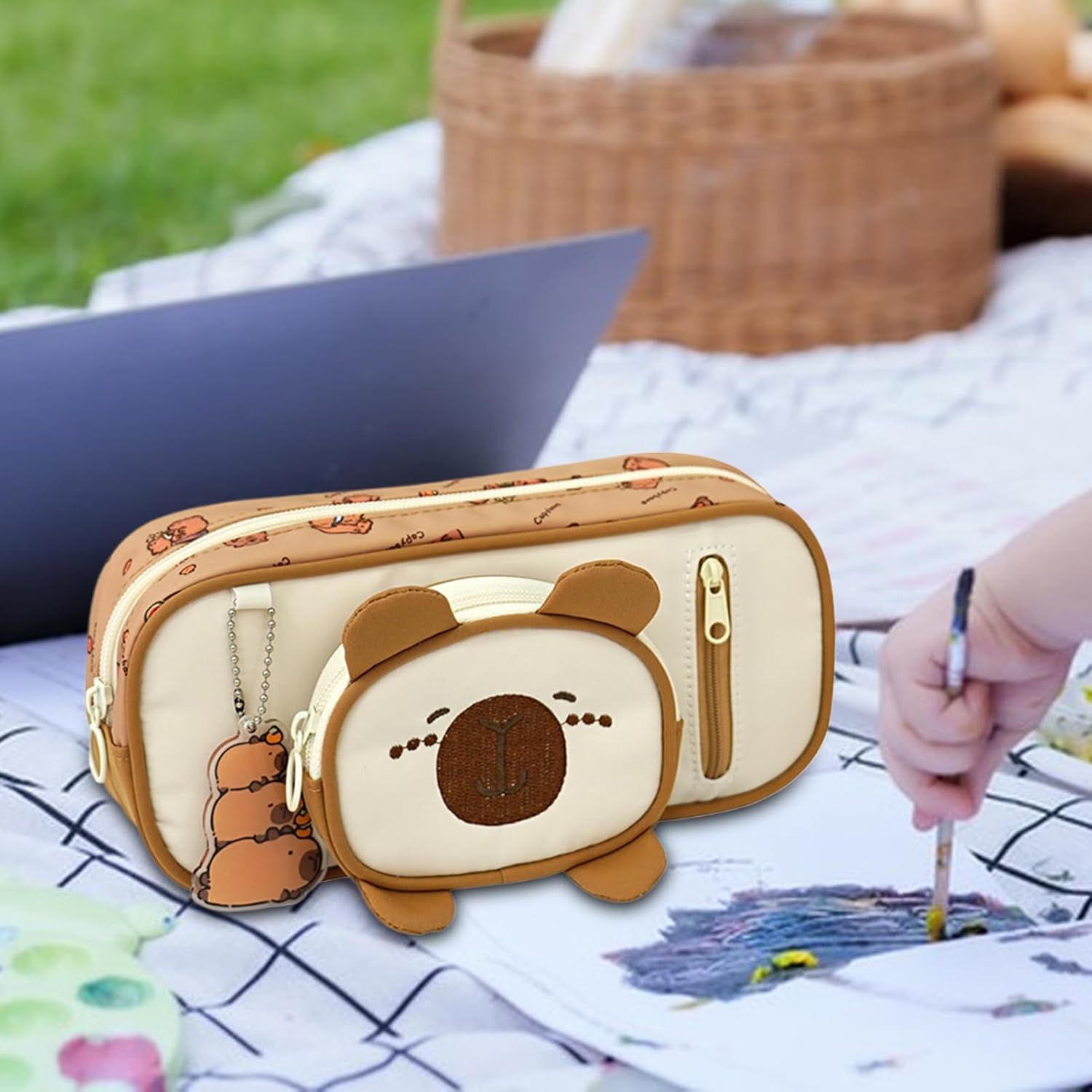 Soluzione di cancelleria multi-bisogno: dotato di una custodia rimovibile con gancio e scomparto portaoggetti, questo astuccio offre un'organizzazione flessibile per una vestibilità rapida di piccoli oggetti, mentre il suo design 3D staccabile migliora la versatilità per vari usi Scomparto dedicato per cancellare: dispone di un'organizzazione multistrato con design di cancelleria ben ordinato, che assicura che penne, gomme e accessori siano sistematicamente disposti per un accesso senza sforzo e la massima comodità Design carino: questo portapenne creativo quotidiano presenta un design capibara 3D e un simpatico fascino del personaggio, migliorando sia la funzionalità che il fascino visivo per l'uso quotidiano Uso a lungo termine: realizzato in tessuto Oxford ad alta densità, questo astuccio assicura prestazioni resistenti all'usura e una durata morbida ai graffi per un uso a lungo termine con cerniera liscia in ambienti scolastici ad alta frequenza Ampia compatibilità: dotato di spazioso spazio multiuso, funge da strumento di organizzazione efficiente adattabile a cancelleria, forniture artistiche e esigenze di viaggio in diversi scenari di stile di vita accademico