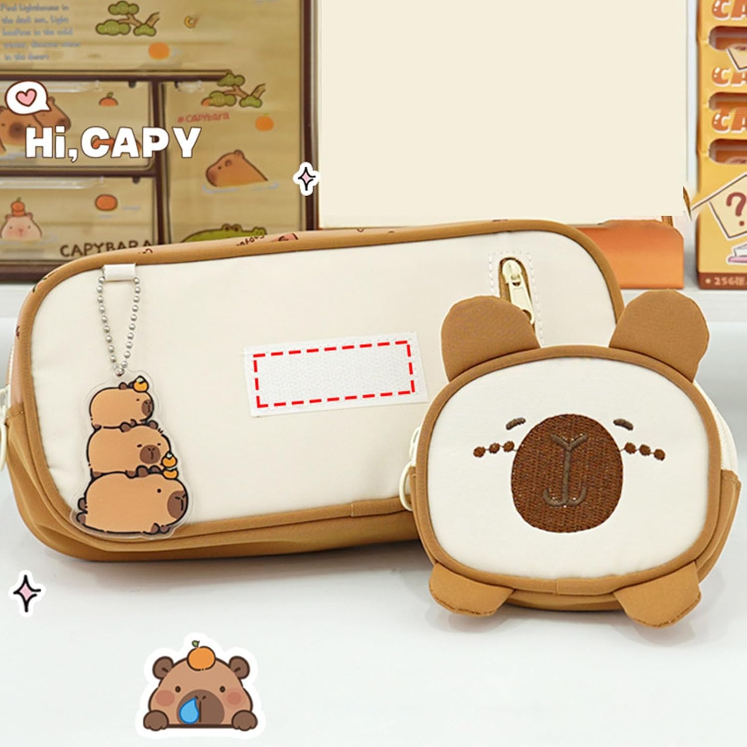Soluzione di cancelleria multi-bisogno: dotato di una custodia rimovibile con gancio e scomparto portaoggetti, questo astuccio offre un'organizzazione flessibile per una vestibilità rapida di piccoli oggetti, mentre il suo design 3D staccabile migliora la versatilità per vari usi Efficiente organizer multi-tasca: progettato con un layout di archiviazione intelligente suddiviso in zone e interni strutturati, assicura che ogni articolo abbia il suo posto offrendo allo stesso tempo un'efficiente organizzazione multistrato per un uso senza interruzioni Aspetto accattivante: caratterizzato da un design 3D a forma di capibara, questo astuccio combina uno scopo pratico e carino con l'estetica dei dettagli delle lettere per un fascino affascinante e un uso funzionale Struttura robusta: realizzata in robusto tessuto Oxford, la custodia assicura un esterno morbido al tatto, antigraffio e una robusta struttura resistente all'usura, ideale per l'uso quotidiano costante in ambienti scolastici esigenti Ampia gamma di usi: con ampio spazio multiuso, funziona come un organizer portatile per il trasporto quotidiano per cancelleria, forniture artistiche e indispensabili da viaggio in vari ambienti accademici