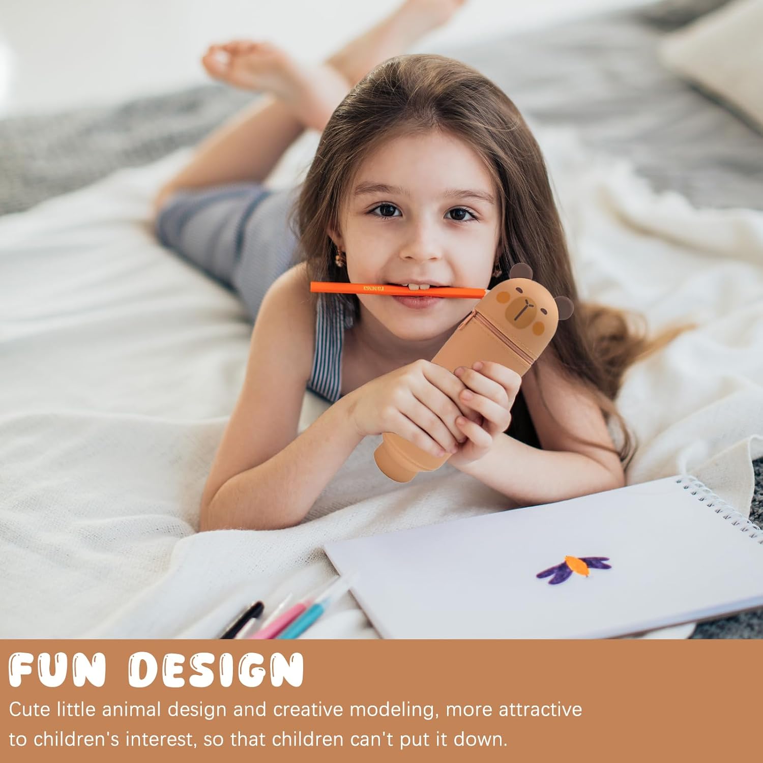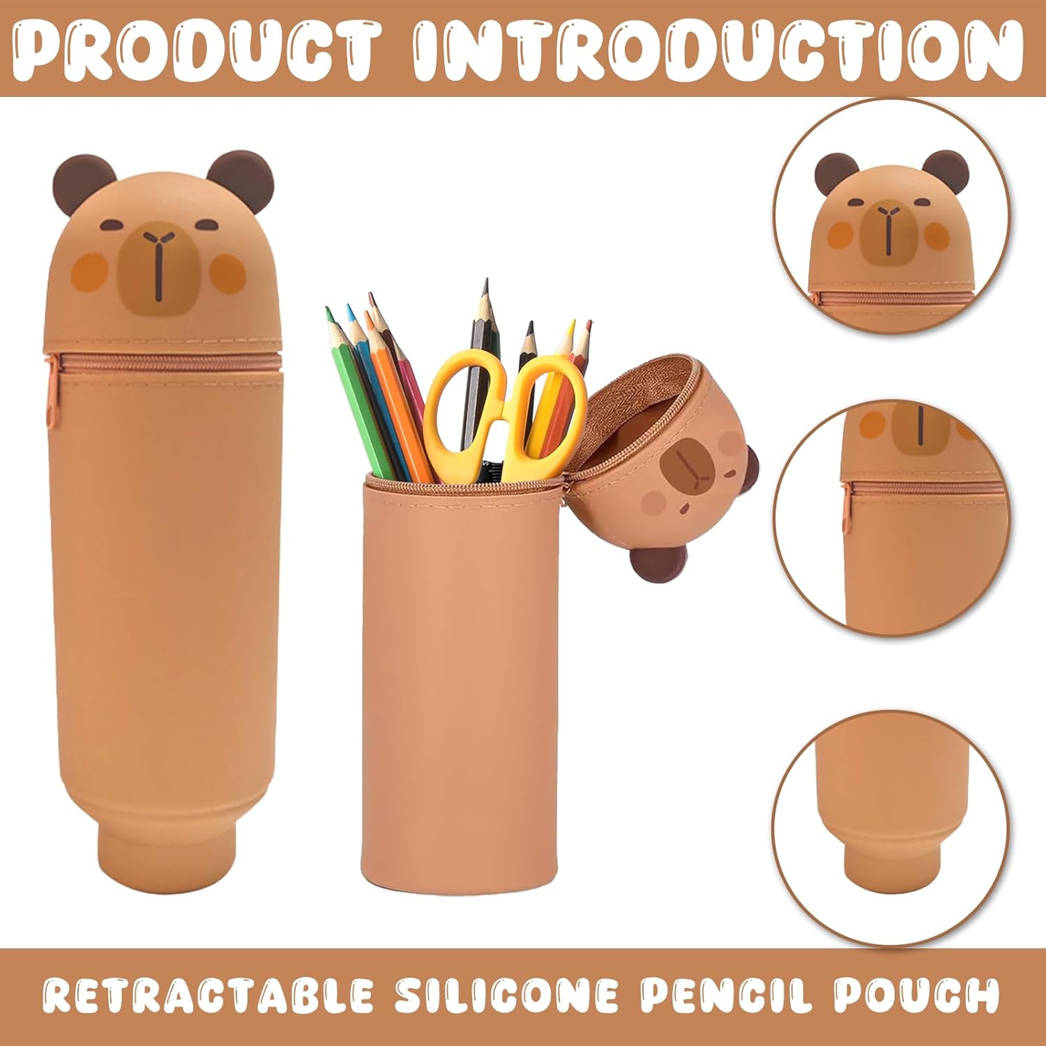 Materiale resistente: realizzato in silicone di alta qualità, piacevole al tatto e facile da pulire. Design alla moda con cerniera in metallo, facile da aprire e chiudere, forte, durevole, bello e generoso Design raffinato: la custodia morbida in silicone 2 in 1 a doppio uso, custodia e portapenne da scrivania, può trasformarsi in un portapenne da scrivania, semplicemente ruotando attorno al proprio asse. Grazie alla sua capacità retrattile, è orgoglioso di essere sulla scrivania. Perfetto per portare le tue matite e matite preferite a scuola, in ufficio o ovunque tu voglia Caratteristiche: custodia morbida in silicone 2 in 1, doppio uso, custodia e portapenne da scrivania, Kawaii ripiegarla nel portapenne. Tirare verso il basso oggetti più grandi come penne a sfera e matite, eyeliner/mascara, ecc. In modo da poter vedere chiaramente tutte le dimensioni e i colori della penna Astuccio multifunzionale: astuccio portapenne con simpatici motivi di animali kapibara. Progettato per studenti, studenti delle scuole elementari e adulti. Oltre alla cancelleria, può essere utilizzato anche per riporre cosmetici e gadget. Se siete alla ricerca di un simpatico astuccio che può contenere molte penne Regalo ideale: questo portapenne è adatto non solo per bambini, studenti, ragazzi e ragazze per posizionare i loro articoli di cancelleria, ma anche per adulti per riporre i loro articoli da ufficio e cosmetici. È possibile acquistare questo astuccio come regalo per i vostri amici e bambini