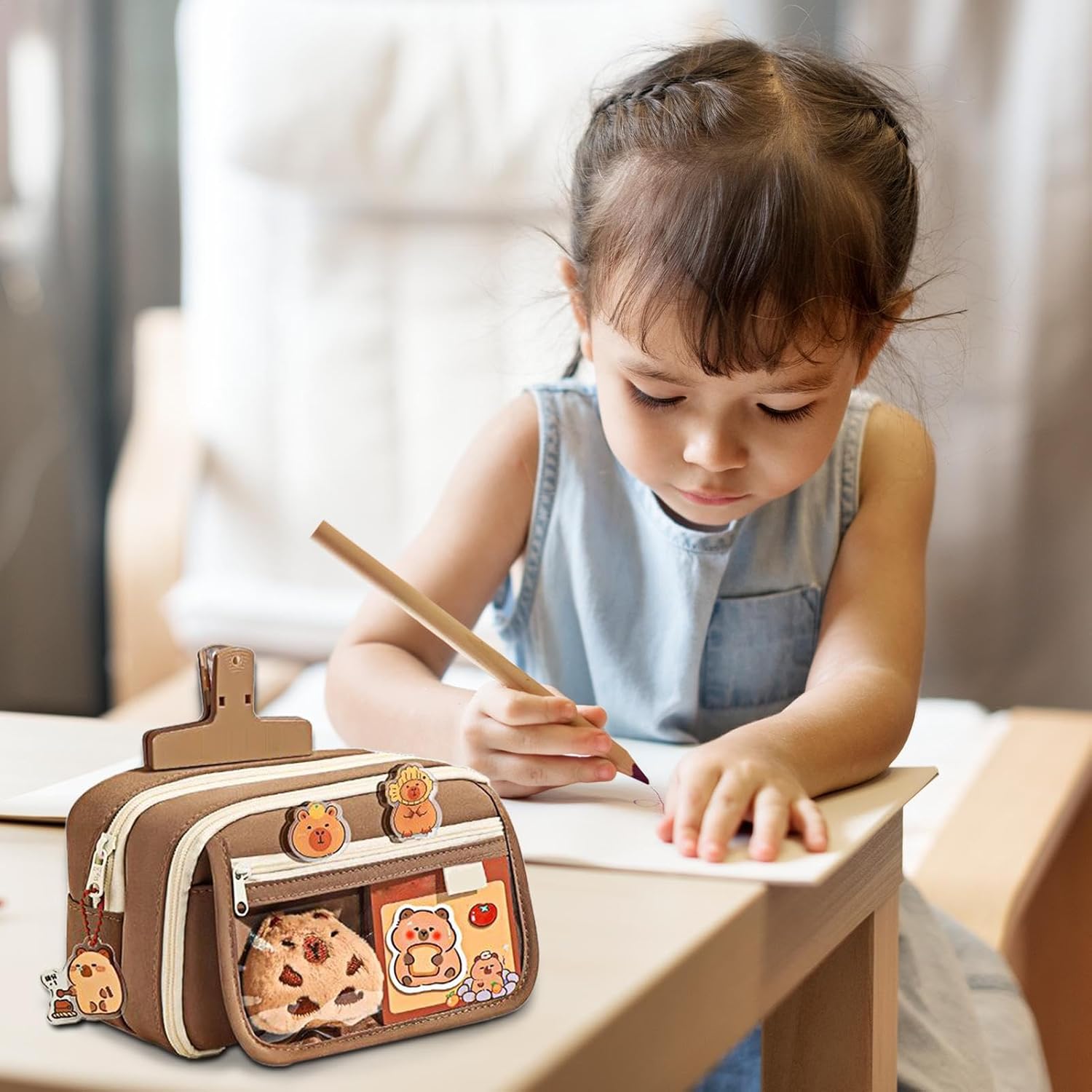 Idea regalo ideale: l'astuccio Capybara è l'attenzione perfetta per e ragazze. Accompagnato da feste di compleanno, anticipazione natalizia e feste per bambini piene di momenti di felicità. Versatile accessorio di scrittura: cinque penne, adesivi, foglietti adesivi, clip, portachiavi e peluche per appunti, idee decorative e personalizzazione, set combinato flessibile per ufficio e hobby Stile incantevole: il simpatico motivo capybara rende l'apprendimento divertente e crea un'esperienza stimolante per chi ama gli accessori di scrittura giocosi Pratico: la suddivisione logica degli scomparti con suddivisioni assicura un'organizzazione efficace di penne e accessori, consente di riporre e ritrovare facilmente tutto il materiale didattico. Funzioni pratiche: combina un design leggero per la portabilità con angoli rinforzati per gestire l'uso quotidiano. Una cerniera liscia aumenta la comodità e offre un'esperienza utente ben pensata per il tuo astuccio per matite.