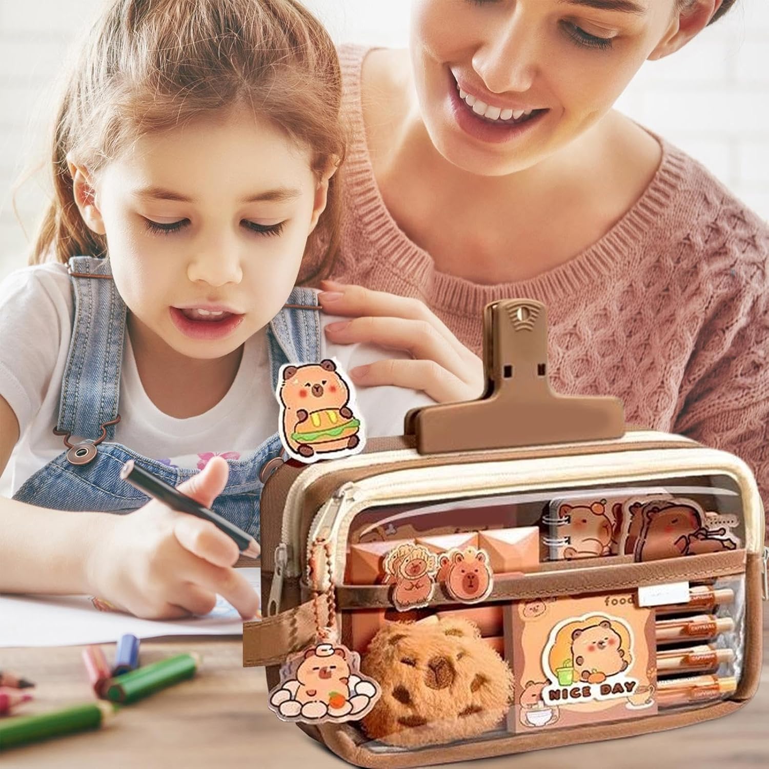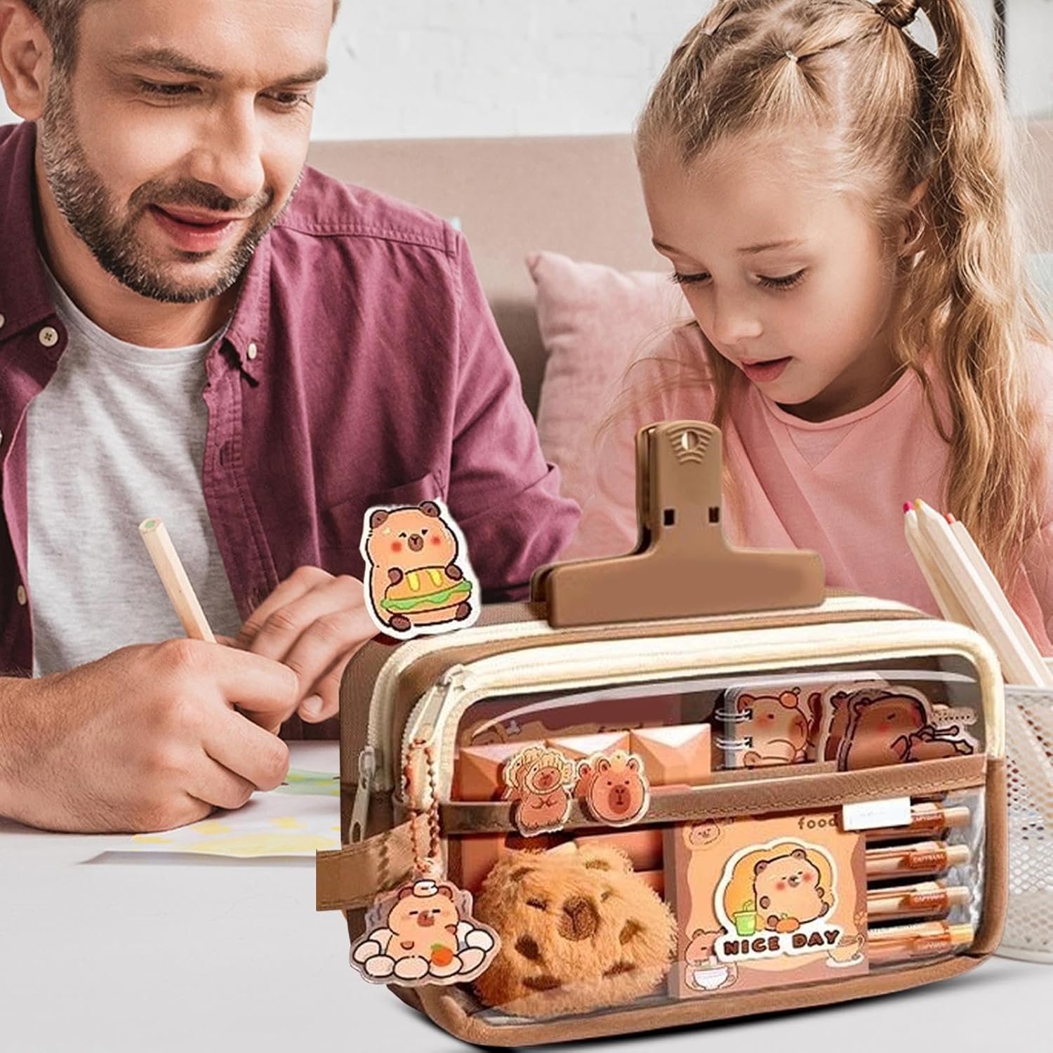Design con accesso a bocca larga: dotato di una grande apertura, l'astuccio capibara supporta l'organizzazione senza interruzioni della cancelleria, offrendo un accesso a bocca larga per un rapido recupero degli strumenti durante progetti creativi, appunti o attività professionali Design intelligente con scomparti: progettato con un sistema di archiviazione a strati, l'astuccio Capybara offre slot dedicati e tasche in rete che modernizzano l'organizzazione di piccoli oggetti, perfetto per mantenere l'ordine nelle borse durante i pendolari quotidiani Struttura morbida ma robusta: il simpatico astuccio Capybara è realizzato in tessuto resistente all'usura che mantiene la sua forma nel tempo, garantendo un uso duraturo resistendo ai graffi per un tocco morbido, rendendolo ideale per studenti e professionisti che apprezzano sia la funzionalità che il fascino nella loro routine quotidiana Pratica integrazione della maniglia: il simpatico astuccio presenta un manico superiore rinforzato che garantisce una facile portabilità e senza mani per comodità, rendendolo facile da trasportare o posizionare in varie impostazioni come aule, aziende o borse da viaggio, mantenendo la cancelleria organizzata e accessibile Ampia gamma di usi: progettata per adattarsi a diversi stili di vita, la simpatica matita serve studenti, professionisti e viaggiatori combinando estetica neutra e praticità per prestazioni costanti in qualsiasi ambiente
