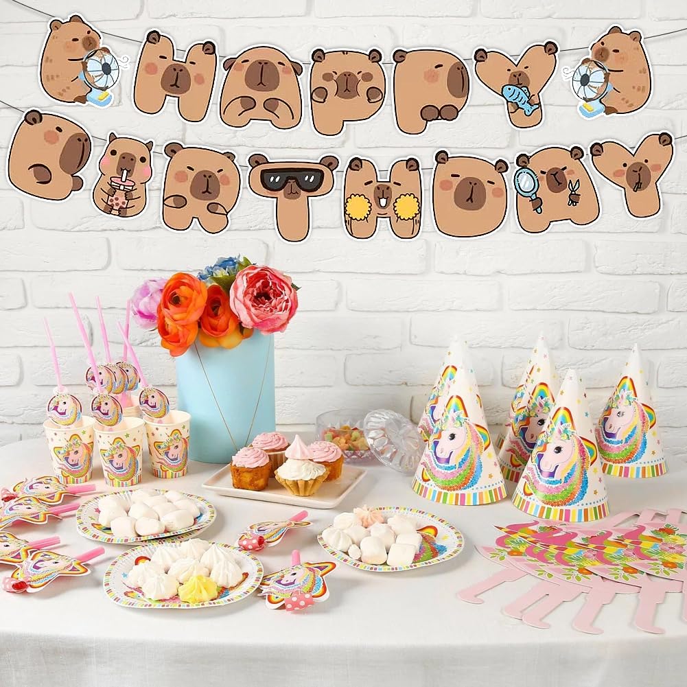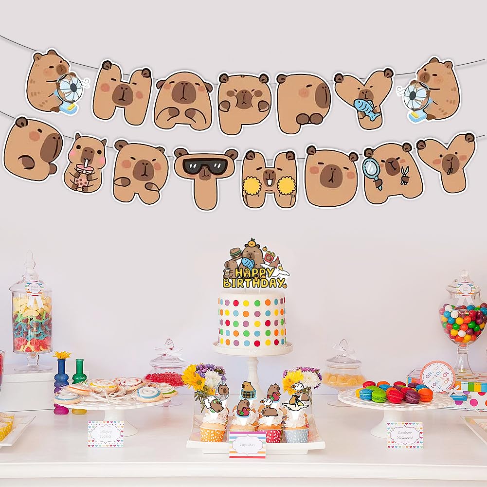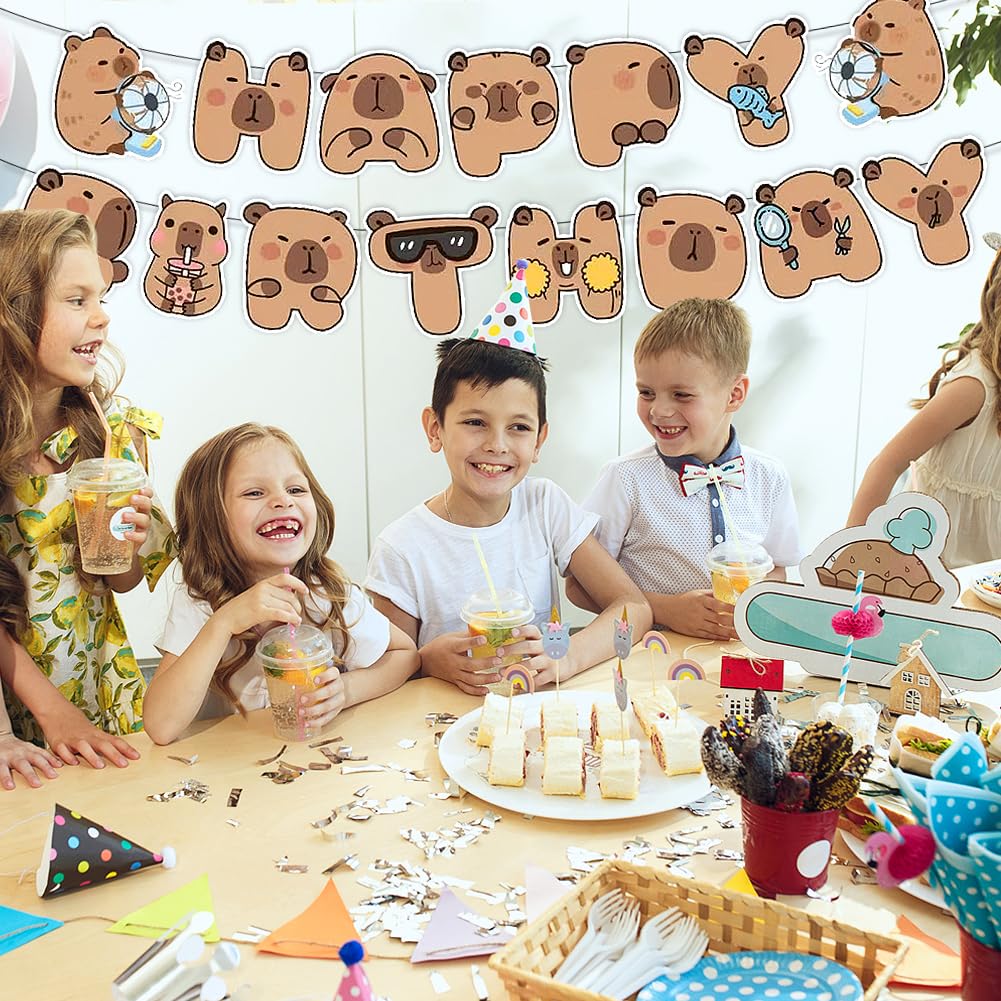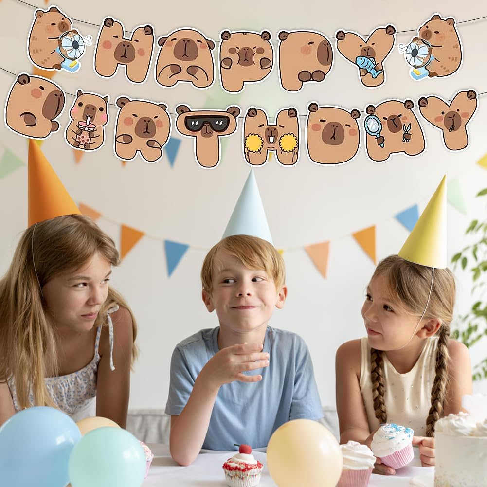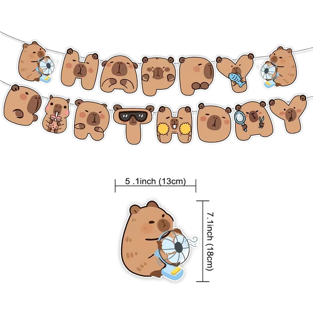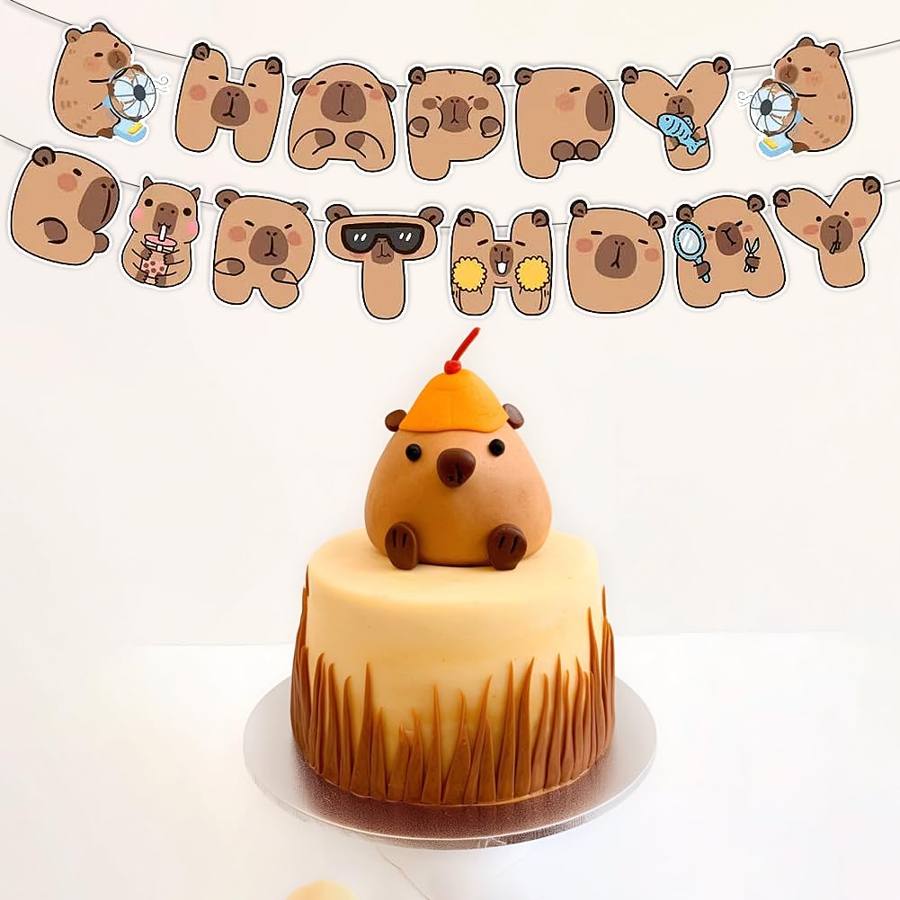 Simpatici disegni Capybara: lo striscione per feste di compleanno capibara presenta simpatici disegni di capibara marrone, con simpatici e adorabili capibara a forma di "Happy Birthday", accattivante e crea un'atmosfera calda e adorabile, rendendo la tua festa vivace e gioiosa. Contenuto della confezione: 1 striscione capibara "Happy" e 1 striscione capibara "compleanno". Materiale di alta qualità: lo striscione di buon compleanno capybara è realizzato in cartone di alta qualità che non è facilmente sbiadito, deformato o strappato. Ha una buona resistenza all'usura e può essere riutilizzata più volte, servendo te e i tuoi amici. Goditi una simpatica festa di compleanno con la tua famiglia e gli amici. Facile da usare: i fori preimpostati nelle carte illustrate consentono di assemblare facilmente le bandierine di compleanno capibara e puoi appenderle all'ingresso della tua festa, pareti, tavoli da dessert, finestre, caminetti, ecc. Ampia applicazione: perfetta per decorazioni per feste di compleanno a capibara, decorazione per feste a tema capibara, feste a tema fauna selvatica, feste a tema animali carini, regalo di anniversario per amici e familiari.