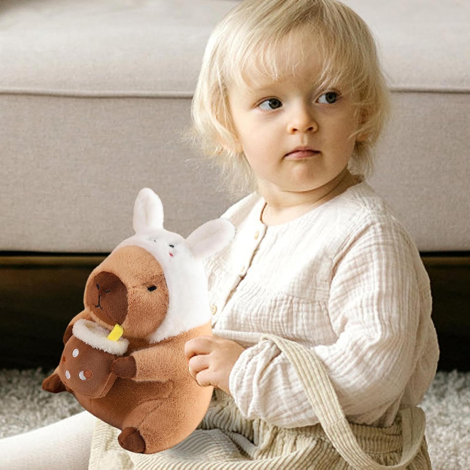 Variazione adorabile: con copricapi rimovibili raffiguranti diversi personaggi, questo peluche capybara è la scelta ideale per tutti coloro che amano gli animali adorabili. Dona un tocco giocoso alla tua camera da letto con i suoi divertenti disegni di travestimento. Compagno comodo da coccolare: realizzato con materiali di alta qualità, il nostro peluche capybara ha una buona elasticità e un tessuto corto in peluche per un abbraccio morbido e confortevole. Dite addio alle preoccupazioni di deformazione! ▼Simpatico peluche Capybara: scopri l'irresistibile fascino di questo realista con un tocco carino. I suoi materiali morbidi e resistenti donano un tocco realistico al suo colore marrone brillante. Questo peluche Capybara è un ottimo regalo per gli adulti che amano gli animali e diventerà sicuramente un compagno coccoloso preferito. Per la maggior parte delle occasioni: il nostro peluche Capybara illuminerà la giornata di tutti. È un'idea regalo versatile, perfetta per tutti i tipi di celebrazioni. Sorprendi amici e familiari in ogni occasione, dalla laurea ai compleanni. Adoreranno la sua morbidezza e il suo aspetto amichevole e possono usarlo come cuscino, giocattolo o oggetto decorativo. Regalo fantastico: mostra il tuo amore e il tuo affetto con questo peluche Capybara, un modo perfetto per esprimere le tue emozioni. Condividi la gioia di questo adorabile e dolce regalo con amici, familiari e amanti in ogni occasione. Illumina la loro giornata con questo gesto commovente.