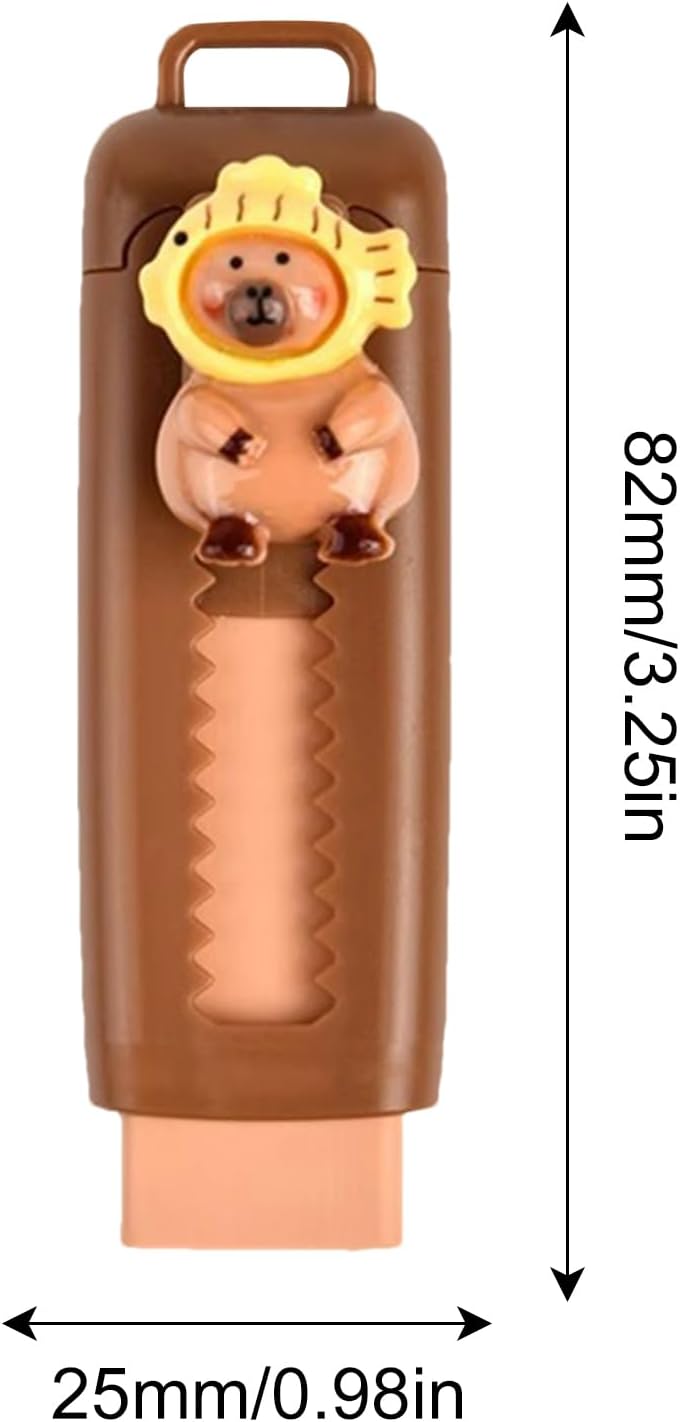 Sicuro e durevoli: queste simpatiche gomme a Capybara Radier sono realizzate in gomma di alta qualità e sono caratterizzate da un aspetto morbido e bordi rotondi, che garantisce un uso sicuro, inodore e permanente senza deformazione Eliminazione senza sforzo di errori: le nostre simpatiche gengive di Capybara Radier offrono un design retrattile con un meccanismo scorrevole; Quindi puoi regolare la lunghezza della gomma ed eliminare errori senza problemi. La gomma retrattile è pratica e il meccanismo scorrevole consente un lavoro rapido Funzionalità versatile: sia al lavoro, a scuola o a casa, queste graziose gengive di Capybara Radier sono perfette per correggere errori quando apprendono, dipingono, disegna o schizzi: sono varie e sono usate frequentemente Conforzo da trasportare: mantieni questa simpatica gomma del raggio Capybara all'aperto. Il design portatile consente una facile conservazione in una tasca o una borsa per lo spillo ed è quindi per l'uso in qualsiasi momento e ovunque. Condividili con gli amici o mantienili come un backup pratico Forma unica: con un modello di cartone animato Capybara unico e interessante. La tua forma carina e i colori vivaci darà sicuramente alla tua area di lavoro un elemento pieno di divertimento e creatività. Sollevati dalla vita di tutti i giorni e goditi un buon con queste gomme vivaci e sorprendenti
