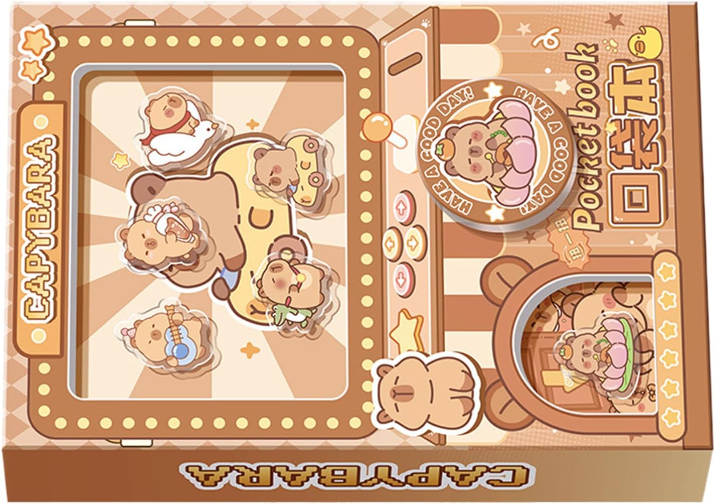 Look adorabile: combinando un simpatico motivo capibara con un look giovanile moderno, questo taccuino supporta scarabocchi e ispira creatività in più scenari, allineandosi perfettamente con le preferenze dei giovani amanti della cancelleria estetica Comodità portatile: realizzata come una struttura portatile, questa divertente e pratica cancelleria funge da strumento creativo quotidiano, si adatta perfettamente alle tasche della borsa per garantire una facile presa di appunti sempre e ovunque Supporto interattivo per la scrittura: solleva il tuo rituale di scrittura con un meccanismo di funzionamento fluido e una facilità sensoriale con meccanismo scorrevole, progettato come una struttura interattiva per alleviare lo stress per migliorare l'impegno tattile riducendo lo stress durante l'uso Copertina liscia Pen-Glide: progettato con carta di eccellente qualità per eliminare le sfumature, questo blocco assicura un'esperienza di scrittura fluida e funziona perfettamente con tutti i tipi di penne gel a sfera Organizzazione creativa della scrivania: questa decorazione per sale riunioni a tema capibara offre un'organizzazione speciale della scrivania con creatività angolare, perfetta per luoghi di lavoro a tema carini e per allestimenti di cancelleria adatti alle collezioni, ispirando combinazioni speciali senza sforzo