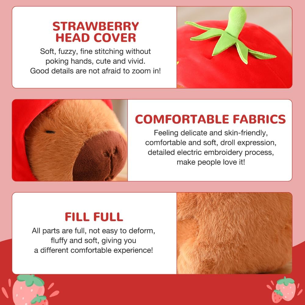 【Comodo compagno】 Questo peluche capibara ha una forma tridimensionale e divertente con un'espressione carina che attira l'attenzione. I peluche capibara sono più piccoli, dimensioni: 23 cm, molto facili da trasportare. Questo peluche capibara ha una forma tridimensionale unica e un'espressione carina che lo rende divertente e accattivante. I bambini sorrideranno sicuramente di gioia e divertimento quando lo vedranno. 【Design creativo】 Questo peluche capibara è dotato di un berretto con motivo a fragole. Il morbido peluche capibara ha una dimensione adeguata, perfetta per essere abbracciato. Questo adorabile peluche capibara è un peluche dal pelo morbido, progettato con cura per conquistare il cuore dei bambini. Ottima scelta come cuscino da abbracciare per adulti e bambini. 【Materiale di alta qualità】 Meravigliosamente morbido e realizzato con materiali sicuri e delicati sulla pelle, questo peluche capibara è realizzato in morbido tessuto di alta qualità che è assolutamente fantastico al tatto. Imbottito con cotone sintetico PP per un comfort eccezionale. Non importa quanto lo stringiate o lo coccoliate, questo piccolo capibara manterrà il suo aspetto soffice ed elegante. 【Eccellente lavorazione】 Il peluche capibara ha un aspetto molto divertente e un'espressione molto carina. I dettagli come gli occhi, il naso e la bocca sono cuciti con cura e sicuri per i bambini, in modo che possano giocare in tutta sicurezza in qualsiasi momento. Inoltre, è realizzato in materiale resistente alla luce che non si deforma o si danneggia facilmente. Basta pulirlo localmente secondo necessità e il peluche rimarrà morbido e pulito a lungo. 【Versatile】 Che abbiate bisogno di una bambola che vi accompagni nei momenti di solitudine o di un amico coccoloso da abbracciare, questo peluche capibara è perfetto. Perfetto come regalo caloroso per bambini, parenti, amici e persone care in occasione di varie festività come Natale e Capodanno o compleanni. Bambini, adolescenti e adulti amano allo stesso modo questo simpatico animaletto.