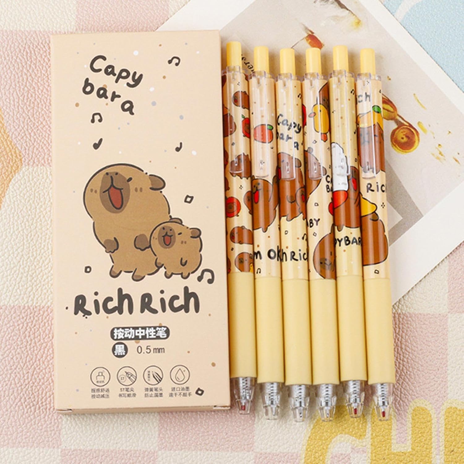 Design divertente e unico: con adorabili personaggi dei cartoni animati Capybara, queste penne sono un'aggiunta giocosa a qualsiasi collezione di cancelleria, offrendo un tocco divertente e creativo ai tuoi strumenti di scrittura quotidiani per bambini e adulti. Esperienza di scrittura fluida: con inchiostro nero a punta fine da 0,5 mm, queste penne offrono linee precise e pulite che rendono la scrittura fluida e senza sforzo, ideali per appunti dettagliati, schizzi o scarabocchi a scuola, lavoro o diario personale. Impugnatura morbida ergonomica: progettate con una presa morbida e confortevole, queste penne sono facili da tenere, rendendole perfette per scrivere a lungo senza causare disagio. Ideale per studenti, scrittori o chiunque abbia bisogno di una penna affidabile per un uso prolungato. Retrattile per comodità: niente più tappi persi della penna. Queste penne presentano un design retrattile, che assicura che l'inchiostro rimanga protetto e impedendo qualsiasi . Il meccanismo a scatto li rende comodi e facili da usare per tutte le età. Regalo perfetto per gli amanti degli animali: per bambini, adolescenti o adulti, queste penne sono il regalo perfetto per chi ama capibara o cancelleria eccentrica. Il divertente tema animale e il design estetico attirano tutte le età.