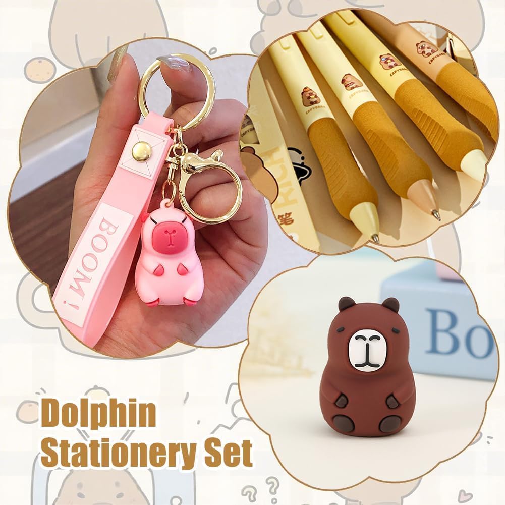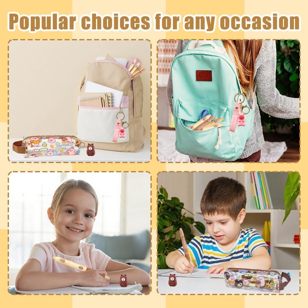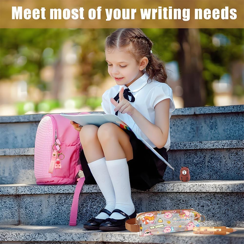 Tessuto Oxford di alta qualità per una lunga durata. Realizzato in materiale Oxford ad alta densità, questo astuccio è resistente agli strappi, impermeabile e facile da pulire. La struttura robusta garantisce che rimanga intatta anche con l'uso quotidiano, corrisponde esattamente alla descrizione del prodotto per ridurre al minimo i ritorni e offre ai genitori fiducia nella qualità. Set pratico 4 in 1 con design carino. Include un ampio astuccio trasparente a 3 strati, 50 adesivi giocosi, 4 penne gel cancellabili e un simpatico portachiavi. Progettato per gli studenti, combina lo stoccaggio funzionale con la creatività giocosa per l'apprendimento organizzato e il divertimento. Il design con motivo Kapibara per il piacere quotidiano dei personaggi dei cartoni animati di Kapiba entusiasma il set con colori vivaci e dettagli affascinanti. La cerniera liscia, gli angoli arrotondati del portachiavi e gli scomparti trasparenti garantiscono sicurezza e facilità d'uso mentre presentano creazioni adesive. Versatile per scuola, viaggi e molto altro Perfetto per aule, Kunst-AG o gite in famiglia. Il design multistrato leggero mantiene penne, gomme e piccoli oggetti ordinatamente ordinati, mentre le dimensioni compatte si adattano facilmente agli zaini per organizzare in viaggio. Regalo perfetto per le pietre miliari dei bambini. Un pacchetto economico che unisce praticità e divertimento Ideale come regalo di compleanno, sorpresa per l'inizio della scuola o come regalo per le vacanze: risveglia la gioia e promuove la creatività, rendendolo popolare tra bambini e genitori.