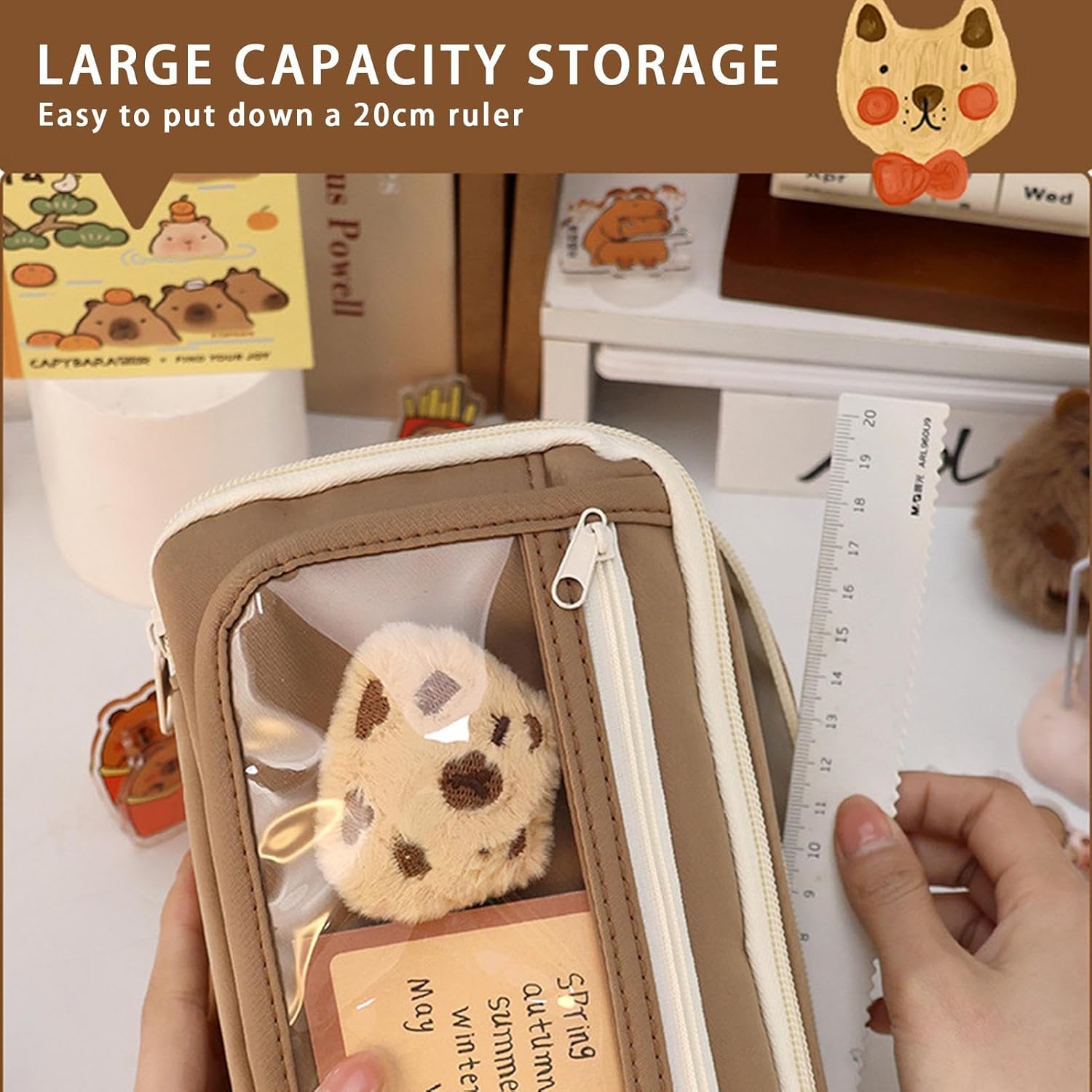 Comodità senza precedenti: l'innovativa ampia apertura consente un accesso facile e veloce, semplificando il processo di organizzazione e consentendo l'accesso alle modifiche agli elementi necessari: un comfort ineguagliabile per accedere agli effetti personali. Maggiore efficienza: la vita più facile con l'organizer multistrato della custodia Capybara e le tasche in rete trasparenti ben organizzate. Organizza i tuoi articoli senza problemi con una categorizzazione flessibile in base alle tue esigenze. Mantieni tutto efficiente e con organizzatori multistrato integrati e slot speciali. Eccellente design: confortevole al tatto, resistente all'abrasione e ai graffi, con uno strato esterno realizzato con tessuti e resistenti, offrendo una perfetta combinazione di estetica e praticità attraverso la selezione di tessuti di alta qualità. Funzionalità migliorata: trasforma la tua custodia in un accessorio versatile. Con uno strato trasparente rimovibile, la custodia Capybara può essere convertita in due tasche per penne in pochi minuti, rendendolo la soluzione perfetta per tutte le tue esigenze di trasporto nel campus, al lavoro o in viaggio. Ampio utilizzo: la custodia Capybara è la soluzione ideale per le tue esigenze di archiviazione. Combina moda e funzionalità e può essere utilizzata come borsa per il trucco, collega o compagno di archiviazione da viaggio, mostrando la tua personalità e stile unici in qualsiasi ambiente.