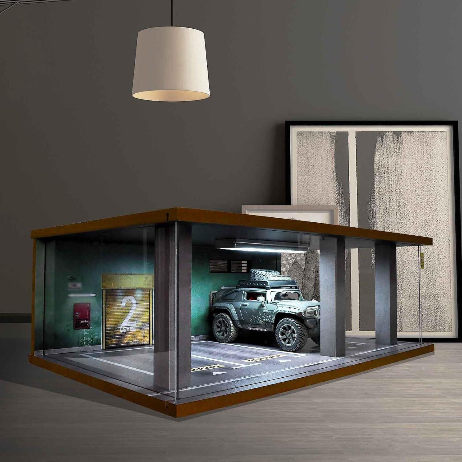 Modello di garage 1:24 modello di parcheggio simulazione modello di raccolta di garage doppio con luci e ornamenti per garage Materiale: realizzato in materiale in lega, antiruggine, ad alta resistenza e durevole. Con effetti di luce, aumenta l'atmosfera della scena, copertura acrilica trasparente antipolvere Previene la polvere e gioca più chiaro Scene atmosferiche uniche ti permettono di divertirti esponendo le tue preziose collezioni in ufficio o a casa. Questo è un ottimo regalo per un appassionato di auto che sta appena iniziando a collezionare e un'ottima idea per coloro che apprezzano una bella esposizione.