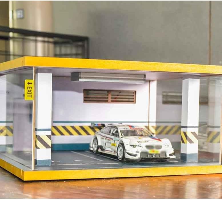 1/32 modello di auto simulato garage in legno massello modello di parcheggio copertura antipolvere con ornamenti luminosi Realizzato in materiale acrilico e legno, questo modello di scena di simulazione è realizzato in proporzioni uguali ed è facile da assemblare. Funzione: controllo degli effetti luminosi/la copertura in acrilico può essere attivata o disattivata Il espositore per giocattoli modello di auto presenta un lotto realistico, rende il tuo modello più attraente. Può essere utilizzato per la visualizzazione di modelli di auto, display di action figure, ornamenti decorativi.