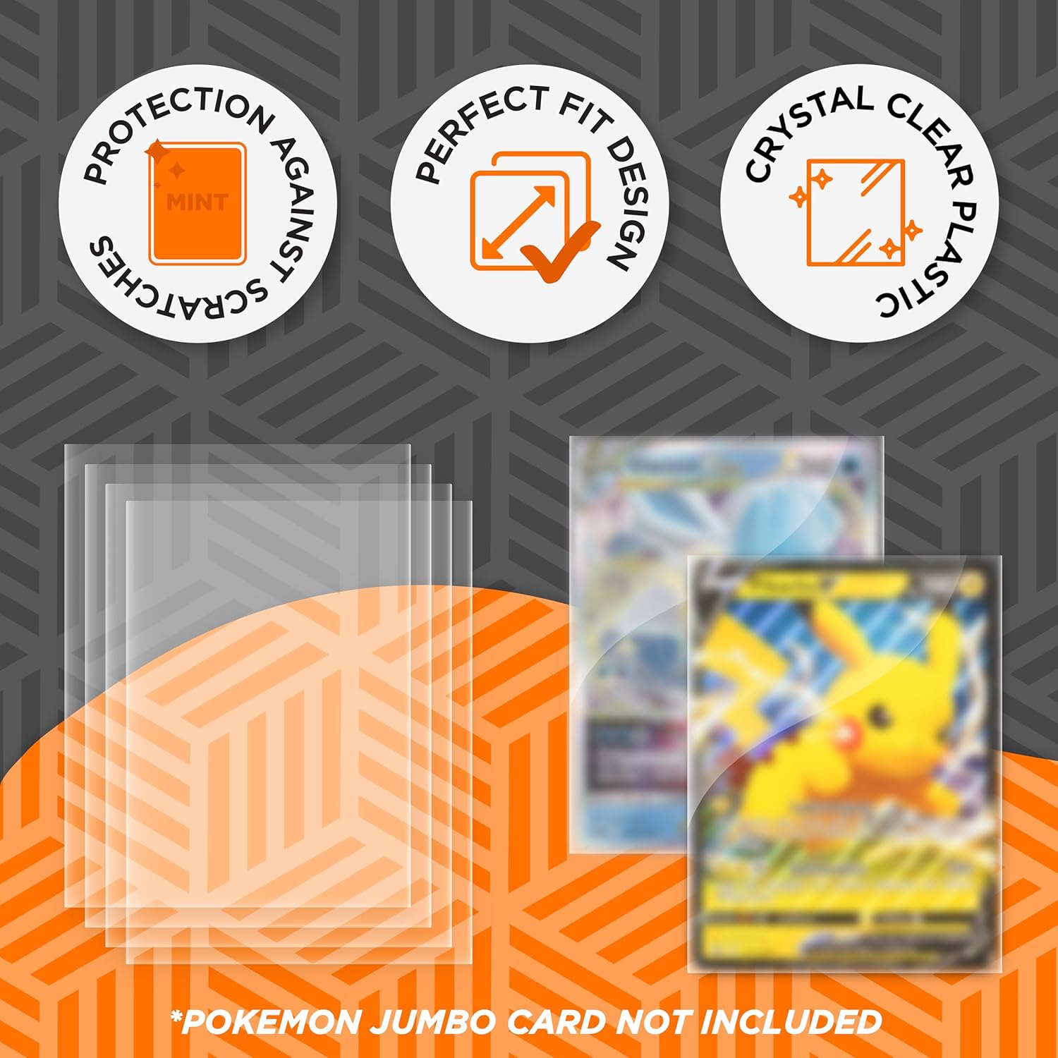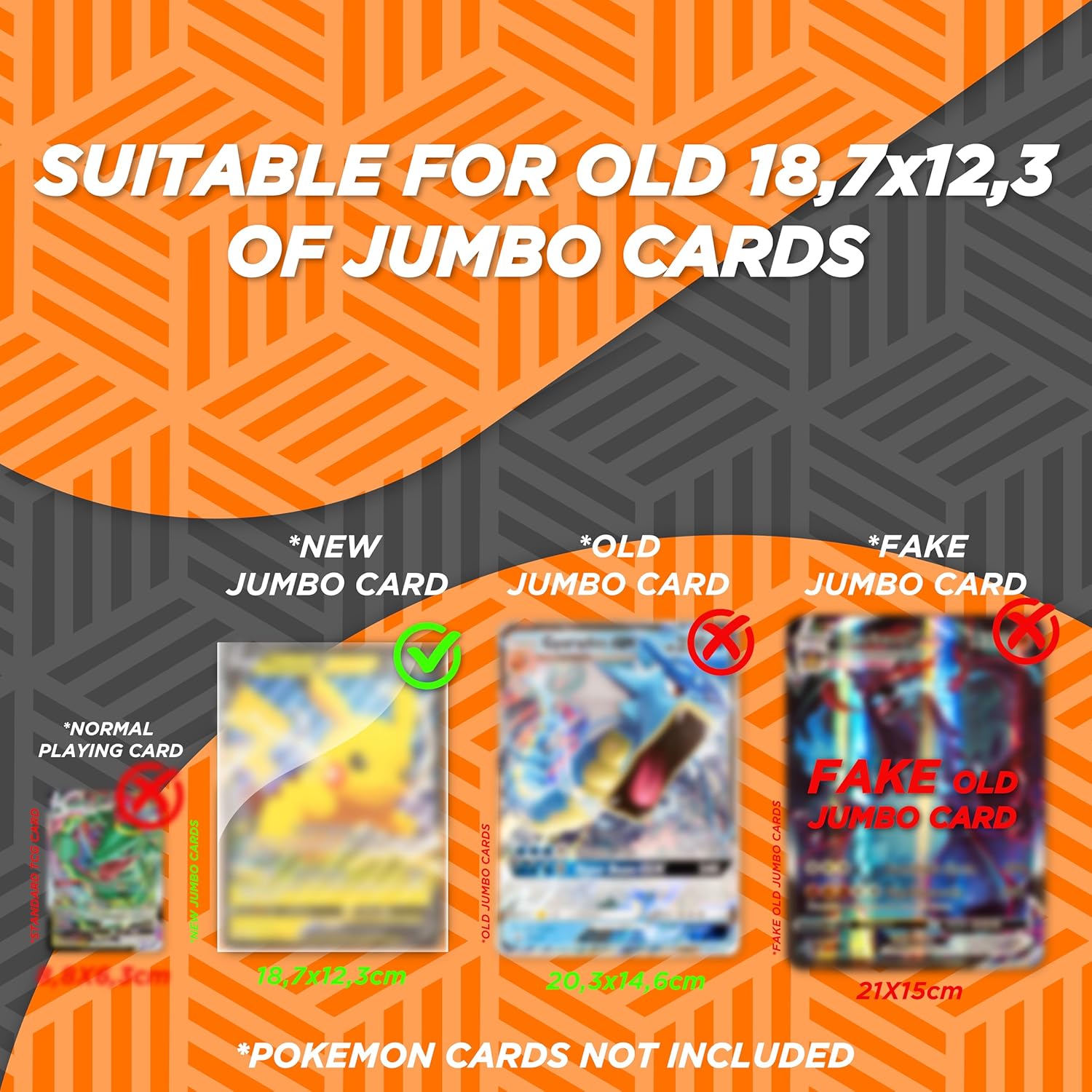 COMPLETAMENTE PERFETTO: buste per carte in plastica robusta di alta qualità, evitando che si sporchi, cura dei dettagli per proteggere le tue carte da piegamenti, macchie e sporco che rovinano la tua collezione. Ideale per presentare le tue carte: le nostre buste promozionali Jumbo sono realizzate e progettate per poter trasportare e utilizzare la tua collezione di carte ovunque. Le cover evitano l'adesione alla polvere che spesso sporca e deteriora la lettera. LA SCELTA CHE CERCHI IN CARTE PROTETTORI: Ogni fan di carte Jumbo cerca il miglior protettore di carte sul mercato. Queste carte sleeves sono la nostra scommessa per le tue carte per mantenere la loro brillantezza e qualità. Protezione: le custodie si adattano alle carte promozionali Pokemon che arrivano nei pacchetti, permettendoti di conservare la tua collezione ben protetta. Scegliendo questo pacchetto le tue carte saranno assolutamente impenetrabili. Dimensioni per lettere Pokemon giganti: le buste hanno una dimensione di 137 mm x 190 mm, che le rende perfette per carte di dimensioni pokemon jumbo, che sono di dimensioni molto più grandi rispetto alle carte standard. Essendo le nostre custodie uniche sul mercato.