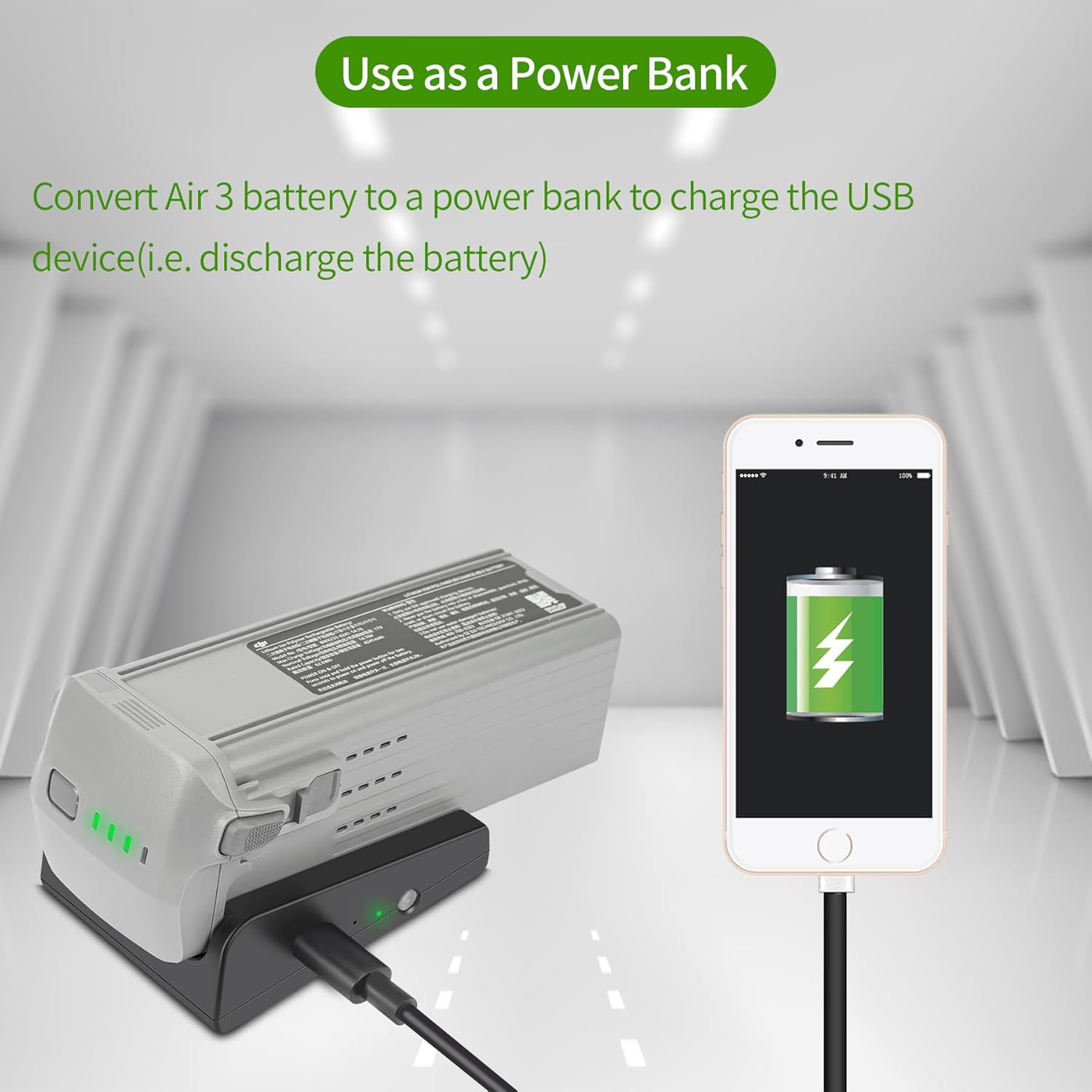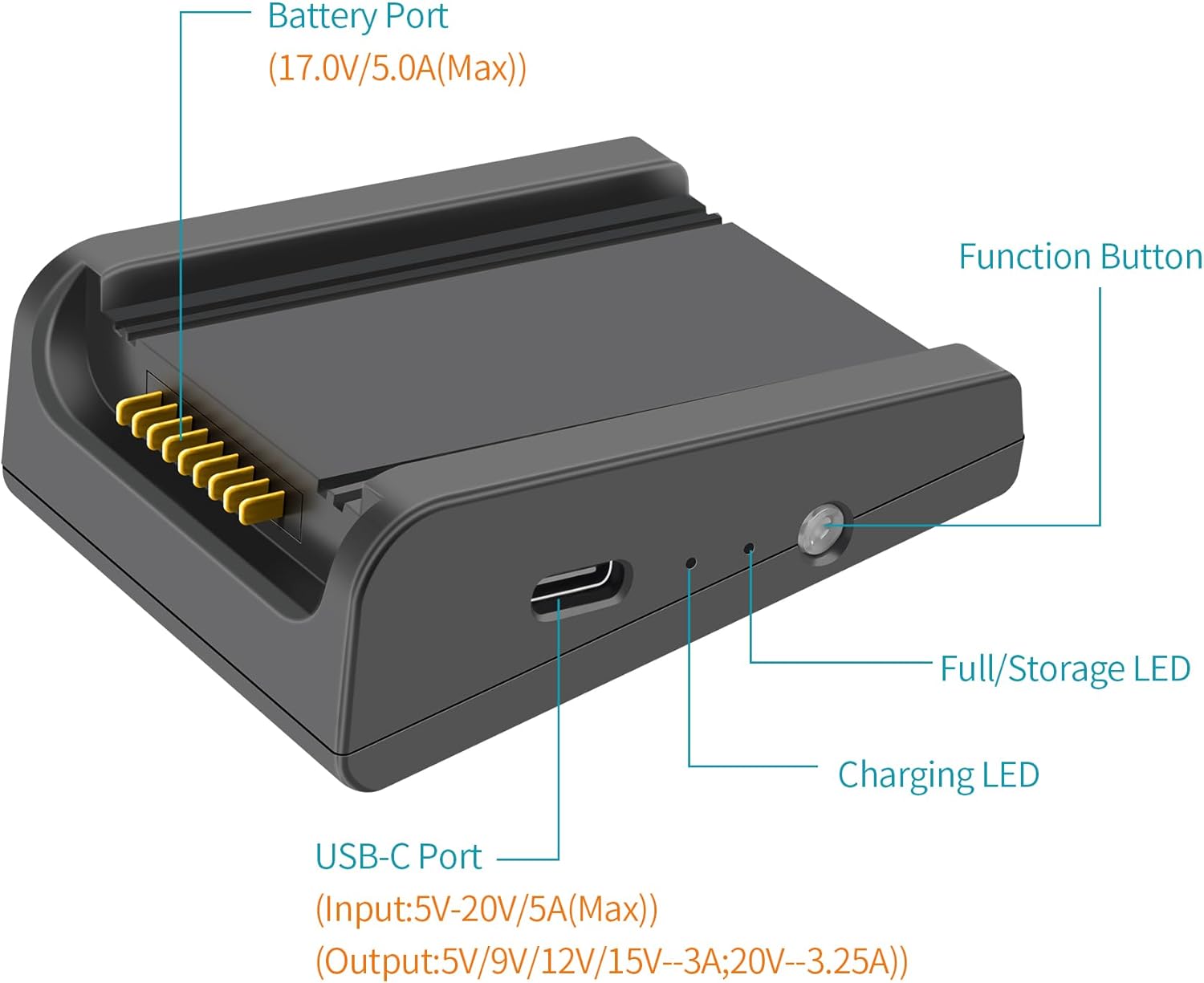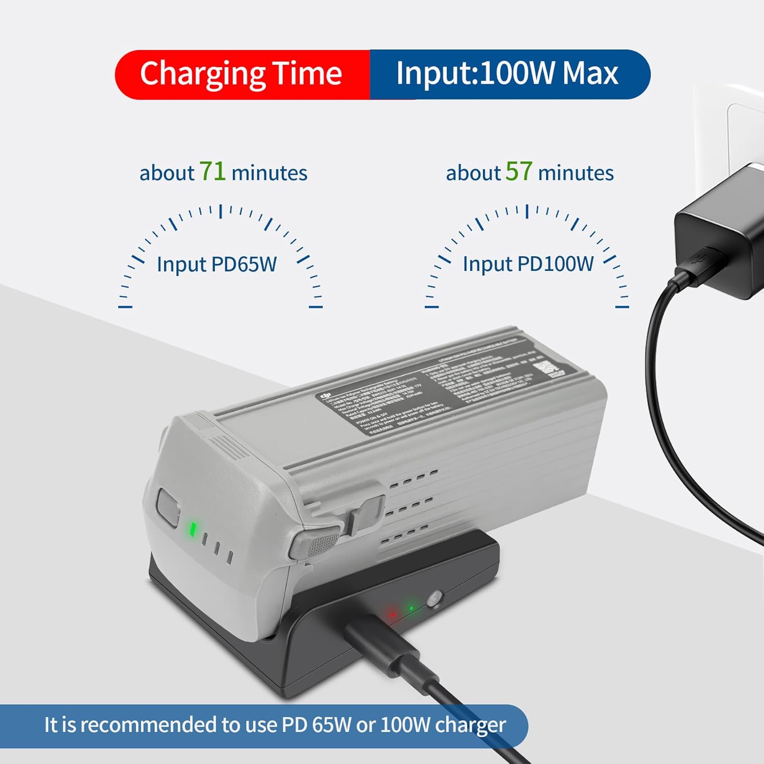 Compatibile: appositamente per batteria DJI Air 3 Due modalità di lavoro: modalità di ricarica complete e modalità di stoccaggio Ingresso: 5V-20V/5A(Max).Uscita:17V/5A(Max), uscita USB: 5V/9V/12V/15V—3A 20V-3,25A Modalità di ricarica complete: Ingresso 100w, circa. 51 minuti; ingresso 65w, circa. 74 minuti(Si consiglia di usarlo con caricabatterie PD100W o PD65W) Modalità di stoccaggio: le batterie con meno di 60% verranno caricate a 60-62%, ideale per la conservazione.Nota: in questa modalità la batteria non può essere ricaricata se il livello della batteria è superiore al 60% Modalità di scarico/ Utilizzo della batteria Air 3 come power bank: È possibile utilizzare la batteria Air 3 per caricare i dispositivi USB, come controller, telefono cellulare. Questa è, scarica Air 3 batteria. Peso netto: 86g; Dimensioni: 7x5.2 x2,5cm Cosa ottieni: 1 caricatore USB, 12 mesi di garanzia e servizio clienti amichevole (Batteria,cavo usb-c non inclusi)