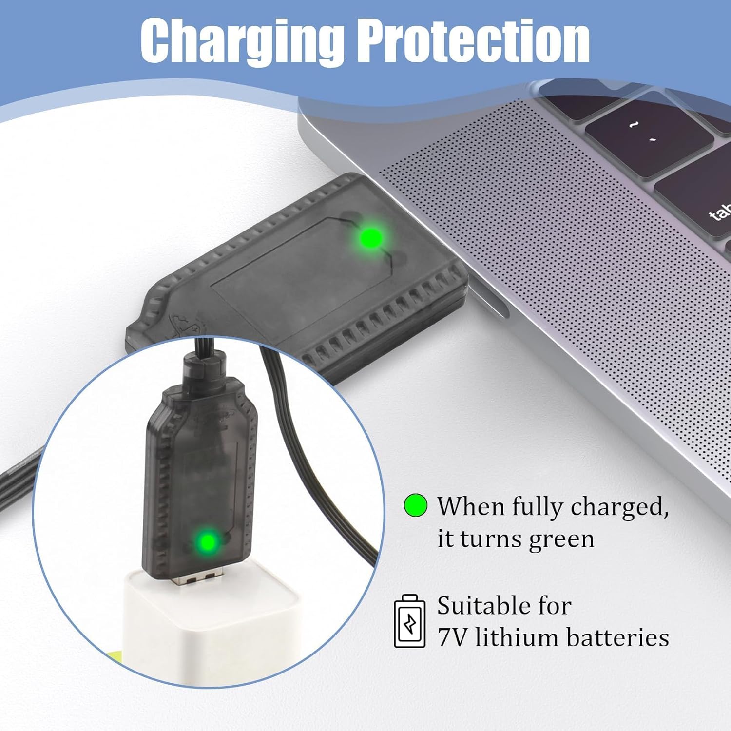 Compatibile con batterie LiPo da 7,4 V 2S: questo caricabatterie USB è progettato per alimentare in modo efficiente le batterie LiPo da 7,4 V 2S, ampiamente utilizzate nei giocattoli telecomandati. Supporta una varietà di modelli come auto, camion, barche, droni, carri armati e altri veicoli RC Sistema di sicurezza integrato: dotato di circuiti di sicurezza avanzati, questo cavo protegge le batterie da sovratensione, sovraccarico e cortocircuiti. Ideale per prolungare la durata delle batterie LiPo e garantire un utilizzo sicuro Prestazioni di carica migliorate: con un'uscita da 1000 mA e un ingresso da 5 V 2 A, questo caricabatteria per auto garantisce una carica rapida senza surriscaldamento. La sua efficienza riduce i tempi di attesa tra due sessioni di guida RC Leggero e facile da trasportare: il design compatto lo rende facile da trasportare in tasca o nella borsa degli attrezzi. Che tu sia a casa o in viaggio per una gara RC, questo caricabatterie USB LiPo si adatta al tuo stile di vita mobile Indicatori LED intelligenti: la luce rossa indica che la batteria è in carica, mentre la luce verde indica la carica completa. Questo sistema rende intuitivo il monitoraggio dei processi ed evita incertezze durante l'uso