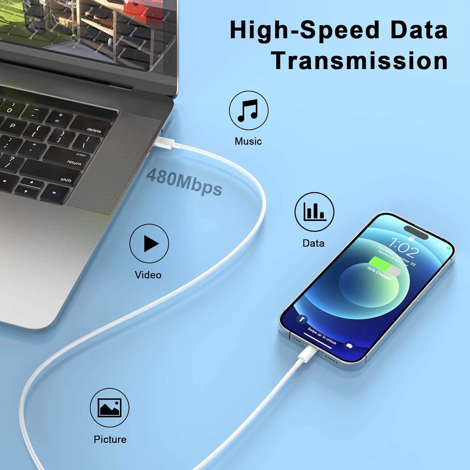 | Appareils compatibles | Compatible for iPhone 14/14 Plus/14 Pro/14 Pro Max/13/13 Mini/13 Pro/13 Pro Max/12/12 Mini/12 Pro/12 Pro Max/11/11 Pro/11 Pro Max/SE 2020/XS/XS Max/XR/X/8/8 Plus/7/7 Plus/6s/6s Plus/6/6 Plus/5 and more lightning device |