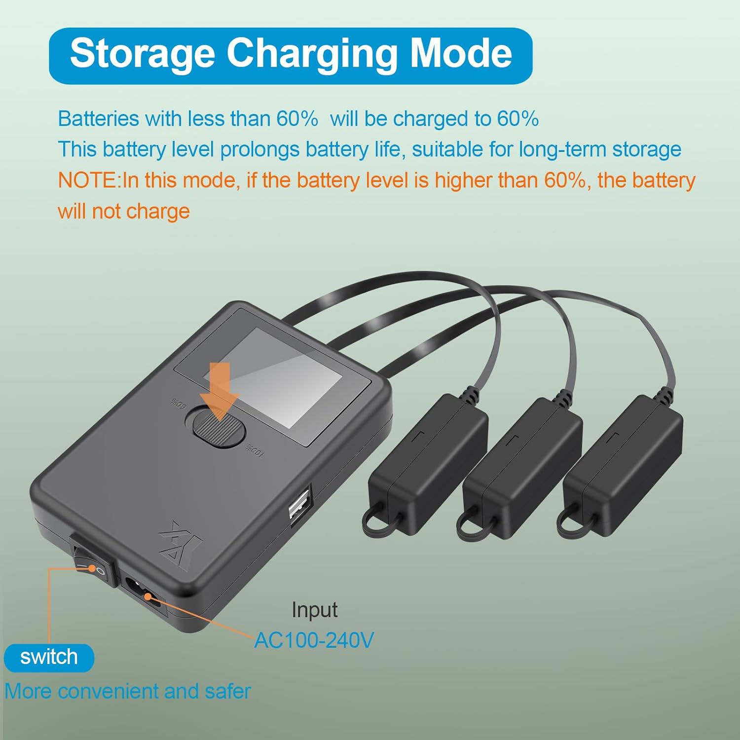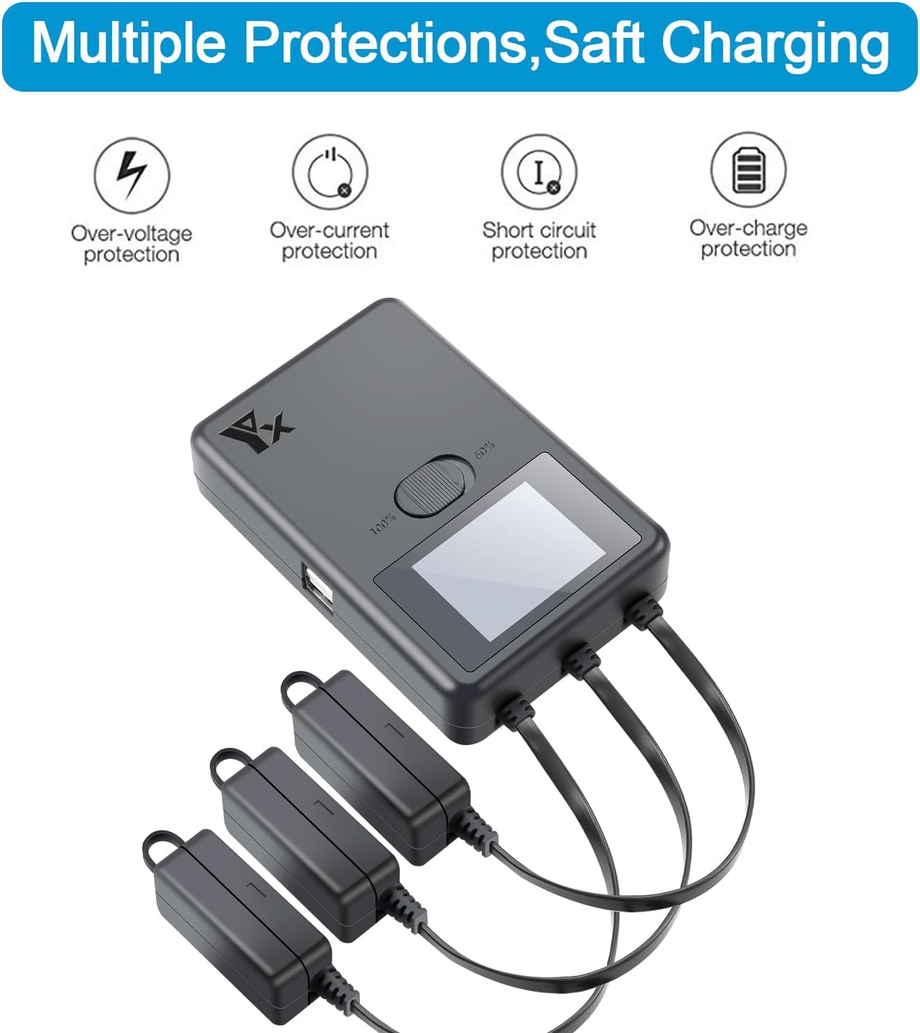 Appositamente progettato per DJI Mini 5 Pro, Mini 4 Pro, Mini 3, Mini 3 Pro batterie e batterie Plus Questo caricabatterie può caricare 3 batterie e 2 dispositivi USB contemporaneamente (può caricare cellulare e telecomandi) Tempo di ricarica: tutte e 3 le batterie contemporaneamente (parallele), mini 4 Pro, circa 65 minuti, batteria da 2453 mAh, circa 70 minuti; batteria da 3850 mAh, circa 110 minuti [Modalità di stoccaggio: conservare la batteria in modo sicuro] Se non si utilizza la batteria per un lungo periodo di tempo, è meglio mantenere i livelli della batteria al 60%. In modalità di ricarica al 60%, le batterie vengono caricate con meno del 60% al 60%. NOTA: in questa modalità, la batteria non si ricarica se il livello della batteria è superiore al 60%. Display LCD mostra lo stato della porta di ricarica, corrente di carica, tensione della batteria e livello della batteria Ingresso: AC 100 V-240 V; uscita: 8,5/8,6 V 6 A (3 rami: 2 A, 2 A); uscita USB: 5 V 3 A [Cosa riceverai] 1 x 5 in 1 caricabatterie, 1 x cavo AC (batteria, telecomando, cavo di ricarica USB e telefono cellulare non incluso)