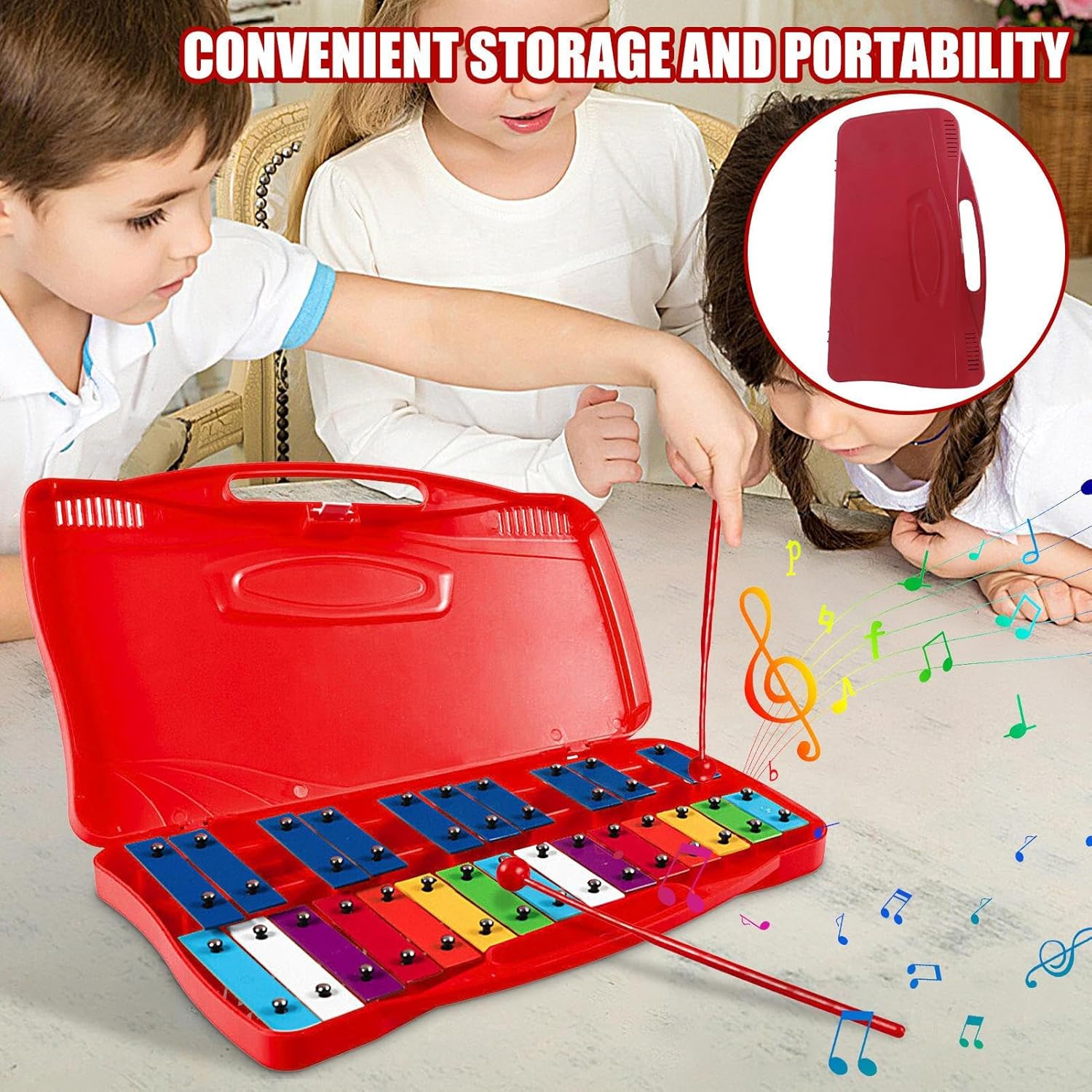 Incoraggia i talenti: introduci i bambini nel mondo della musica con il carillon per Kids Metal. Questo strumento musicale è ideale per promuovere il loro talento, stimolare il loro viaggio di gioco e fornire un modo divertente per apprendere abilità musicali. Eccellente qualità del suono: il carillon per bambini in metallo a 25 voci garantisce toni chiari e luminosi, poiché ogni tasto è accuratamente sintonizzato. Offre prestazioni eccellenti e gioco senza sforzo con due bacchette. Suono coinvolgente: con il suo colore brillante e il design facile da trasportare, questo carillon attirerà l'attenzione dei tuoi bambini e ispirerà la loro creatività musicale; viene fornito con una custodia delicata per un comodo trasporto e protezione. Lunga durata: realizzato in alluminio eccellente resistente all'usura, ogni nota di questo carillon per bambini in metallo suona chiara e precisa. La sua struttura robusta e robusta assicura che non arrugginisca e conferisce allo strumento una lunga durata. Promuovi il talento musicale del tuo bambino: sviluppa le capacità musicali e la creatività del tuo bambino con questo carillon in metallo per bambini. Poiché l'enfasi è sul divertimento educativo, questo è un ottimo per compleanni e vacanze come Pasqua, Capodanno e Ringraziamento.
