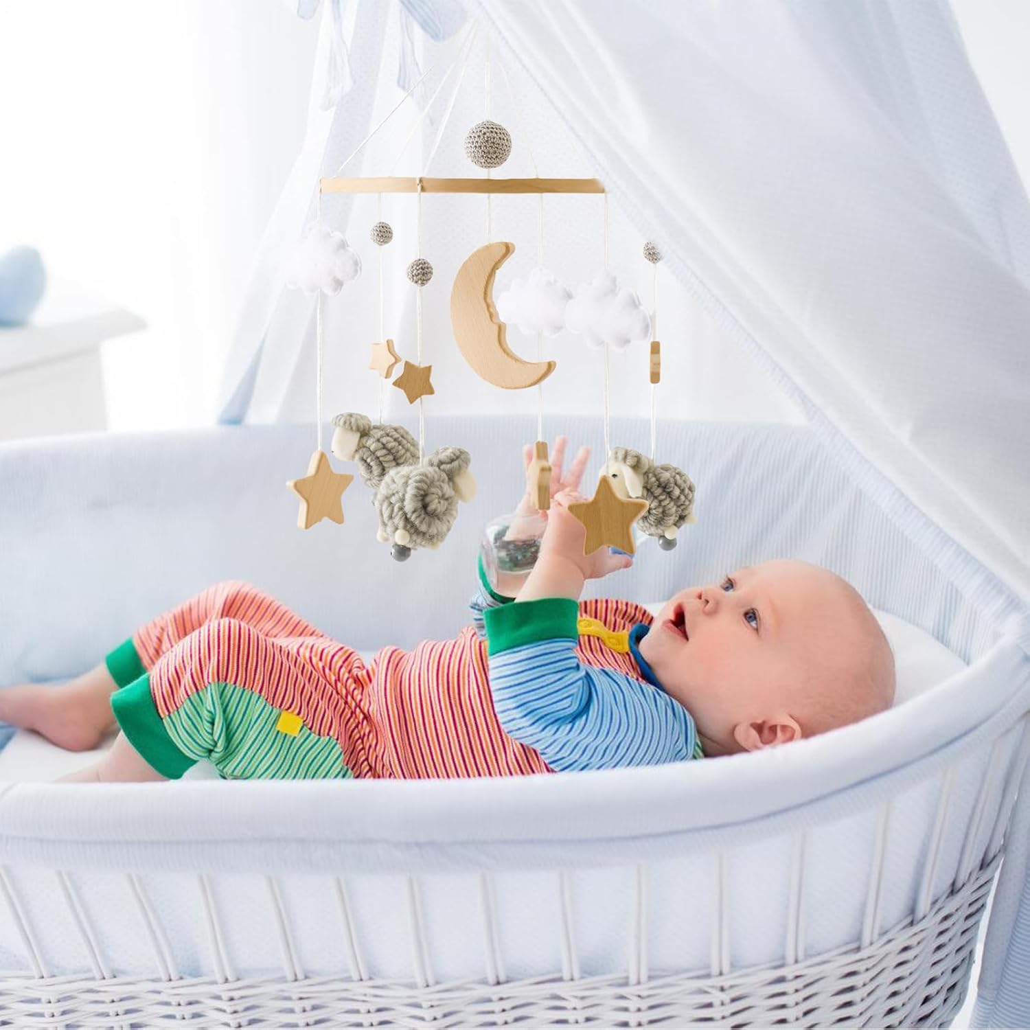 Creatività Funzionale: Realizzato con funzionalità intelligente e fascino decorativo, è regalo per occasioni speciali come compleanni, battesimi o feste del primo mese. Arricchisce l'esperienza familiare stimolando delicatamente la vista del bambino Struttura : Progettato in legno anti-statico con texture delicata e struttura anti-scheggia, assicura resistenza nel e totale tranquillità Ambiente Rilassante: Crea un'atmosfera calmante con melodie dolci e colori stimolanti, promuovendo lo sviluppo uditivo e la crescita cognitiva multisensoriale per bambini Stimolazione multisensoriale: Attrae l'attenzione di e bambini promuovendo la crescita cognitiva con elementi interattivi, mantenendo un'estetica versatile e adatta a tutti i generi. Giocattolo multifunzione: Questo mobile per culla unisce design rilassante e funzione educativa, stimolando l'apprendimento di forme e colori per lo sviluppo infantile con un prodotto versatile che dura nel .