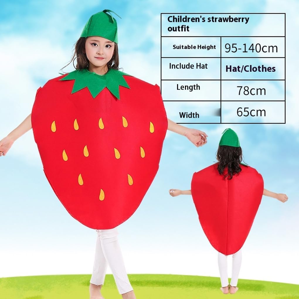 Divertente e colorato: questo vivace e interessante costume da anguria e fragole è adatto a bambini di altezza compresa tra 90 cm e 130 cm, aggiungendo un tocco di allegria a qualsiasi festa in Per maschera Carino e adorabile: costume da frutta per bambini, per uomo e donna, adatto per spettacoli di carnevale, completo di un grazioso cappello da cosplay per un tocco di fascino in più Leggero e comodo: l'abbigliamento è realizzato con materiali morbidi e traspiranti, garantendo una vestibilità comoda per ore di divertimento "dolcetto o scherzetto" Per Unico e creativo: distinguiti dalla massa con questo divertente costume da fragola, un'opzione giocosa e per Halloween o per travestimenti Versatile e divertente: adatto a bambini di altezza compresa tra 90 cm e 130 cm, questo leggero costume da frutta per Halloween è una scelta versatile per feste di Halloween, recite scolastiche o eventi a tema