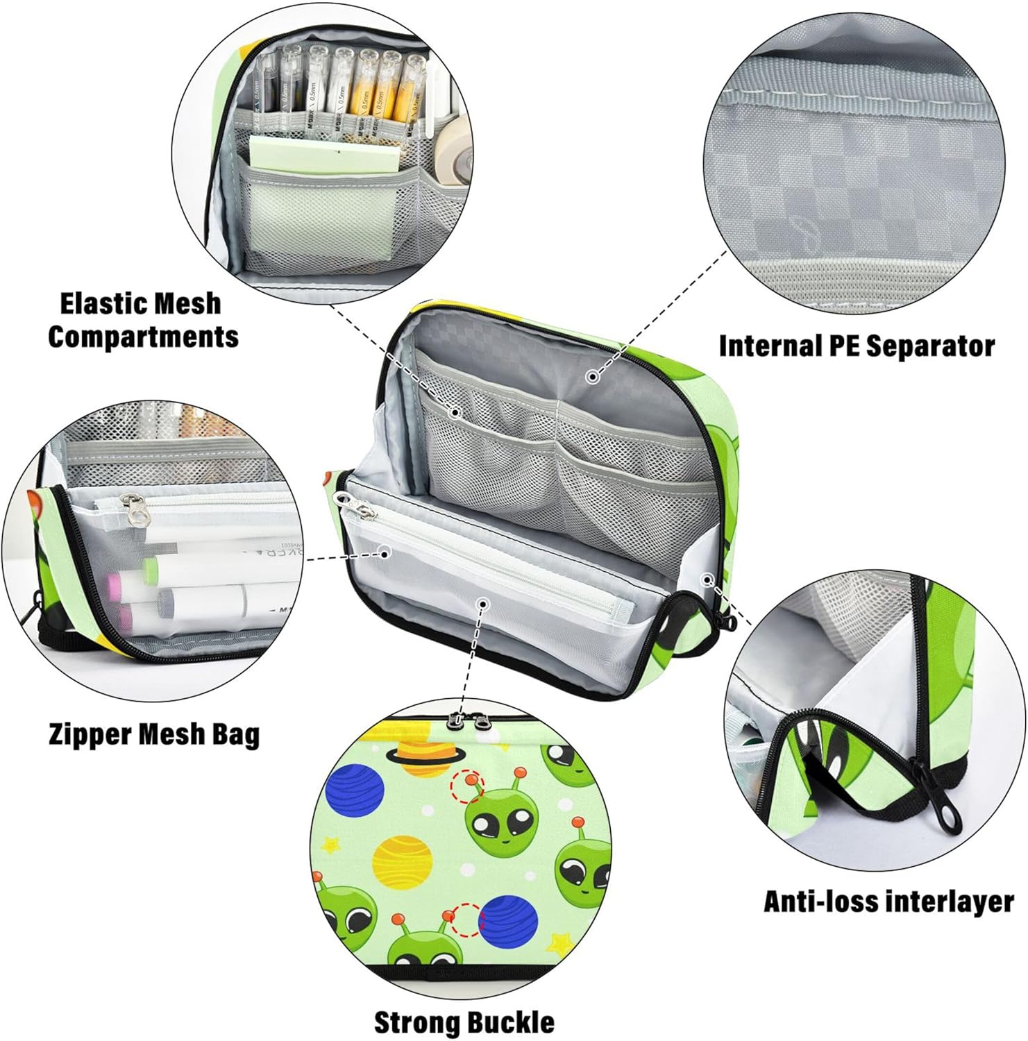 Design intelligente della struttura: l'astuccio si trasforma in un supporto con chiusura magnetica quando piegato, offrendo una visione chiara e un facile accesso alle tue forniture Scelta del materiale di alta qualità: l'astuccio per ragazze utilizza nylon robusto che resiste all'abrasione, resiste agli strappi e rimane pulito con il minimo sforzo, adatto per studenti impegnati e creativi Soluzione di archiviazione efficiente: l'astuccio è dotato di una grande sezione centrale e tasche extra, che lo rendono facile da riporre e individuare piccoli articoli per la scuola o l'ufficio Un sacchetto, molti scopi: grande astuccio per ragazze passa facilmente da un astuccio per la scuola, un astuccio per il trucco o un porta attrezzi da viaggio, ideale per studenti, professionisti e creativi Opzione regalo personalizzata: disponibile in stampe vivaci con testo personalizzabile o design fotografico, l'astuccio organizer per matite è un regalo unico per bambini, artisti o viaggiatori
