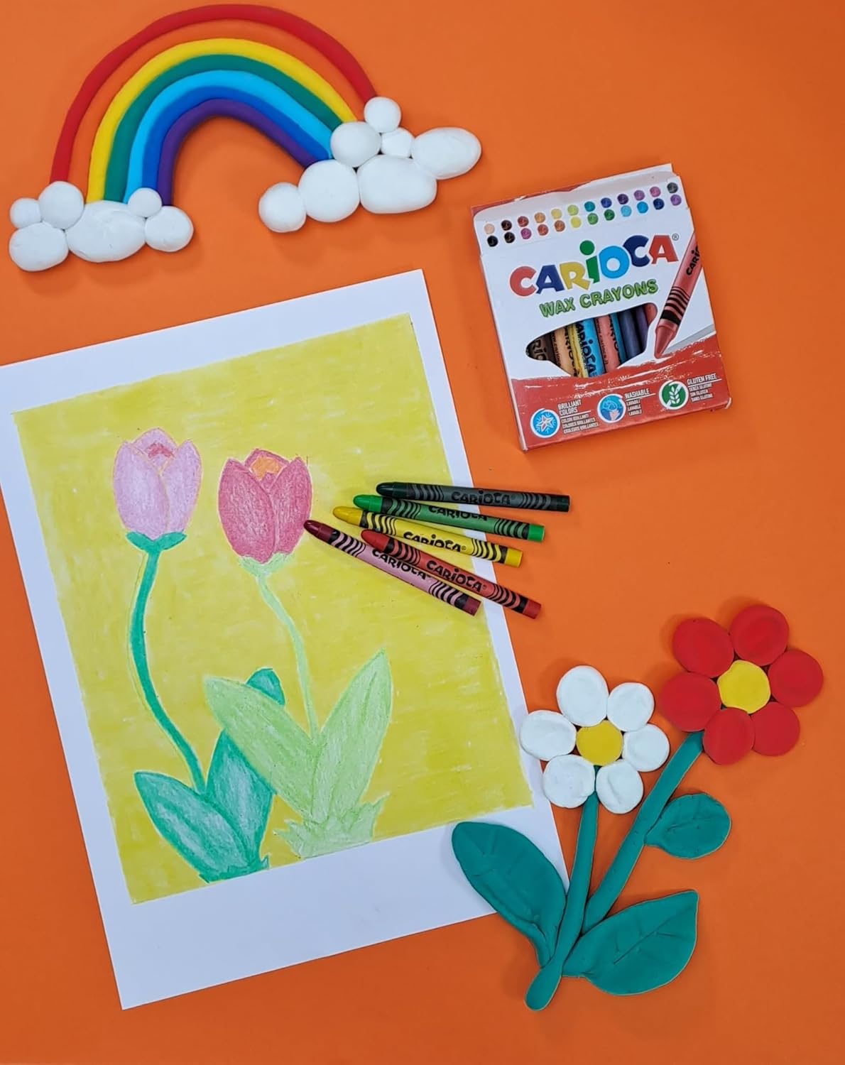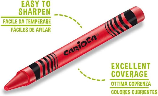 100 pastelli a cera assortiti – Barattolo ricco e colorato, ideale per avere sempre tutti i colori a disposizione per disegni, attività didattiche e tempo libero. Colori intensi e facilmente lavabili – I pastelli rilasciano un tratto vivace e uniforme, ma si puliscono con facilità da mani, superfici e tessuti. Corpo spesso da 8 mm facile da temperare – Perfetti per le mani dei bambini più piccoli, garantiscono una presa comoda e un temperaggio semplice e sicuro. Sicuri e atossici per i più piccoli – Realizzati con materiali certificati, privi di sostanze nocive, ideali per un uso scolastico e creativo in totale tranquillità. Qualità CARIOCA – Made in Italy – Un marchio di fiducia per insegnanti e famiglie, sinonimo di qualità, sicurezza e supporto alla creatività infantile.