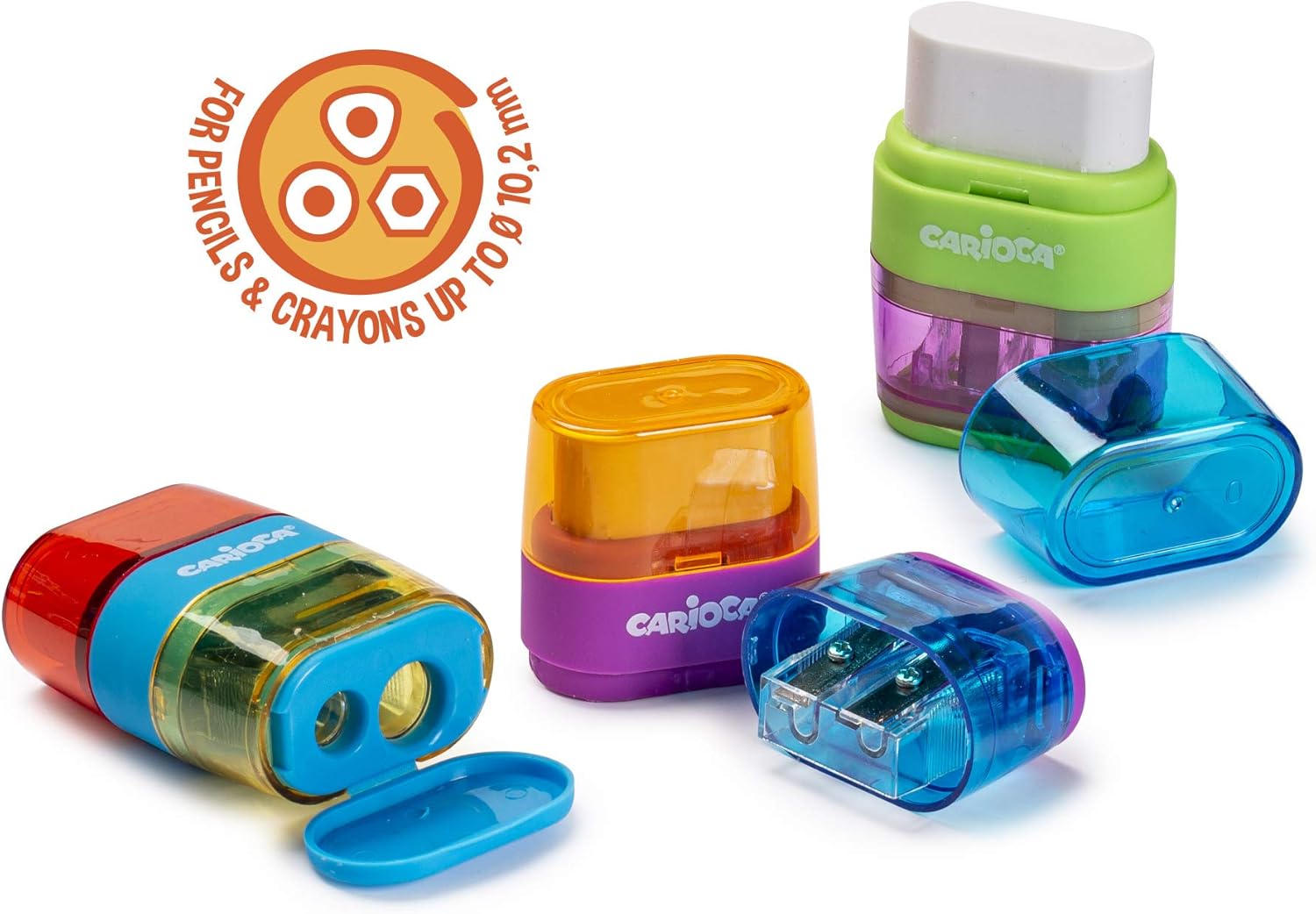 Set temperino con 2 buchi e gomma 12 pz Temperamatite per matite rotonde, triangolari ed esagonali fino a Ø 10,2 mm Vite di sicurezza sulla lama Ideale per la scuola e l'ufficio Serbatoio per i trucioli