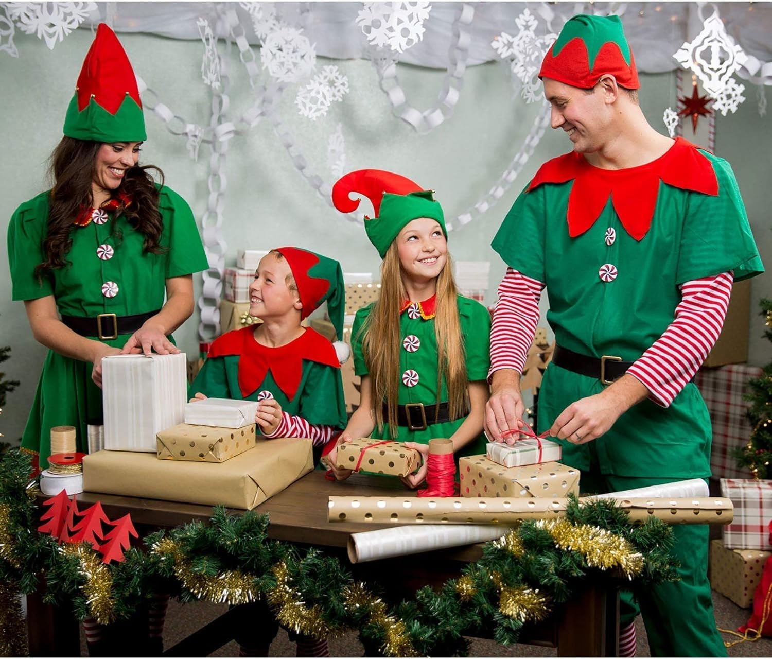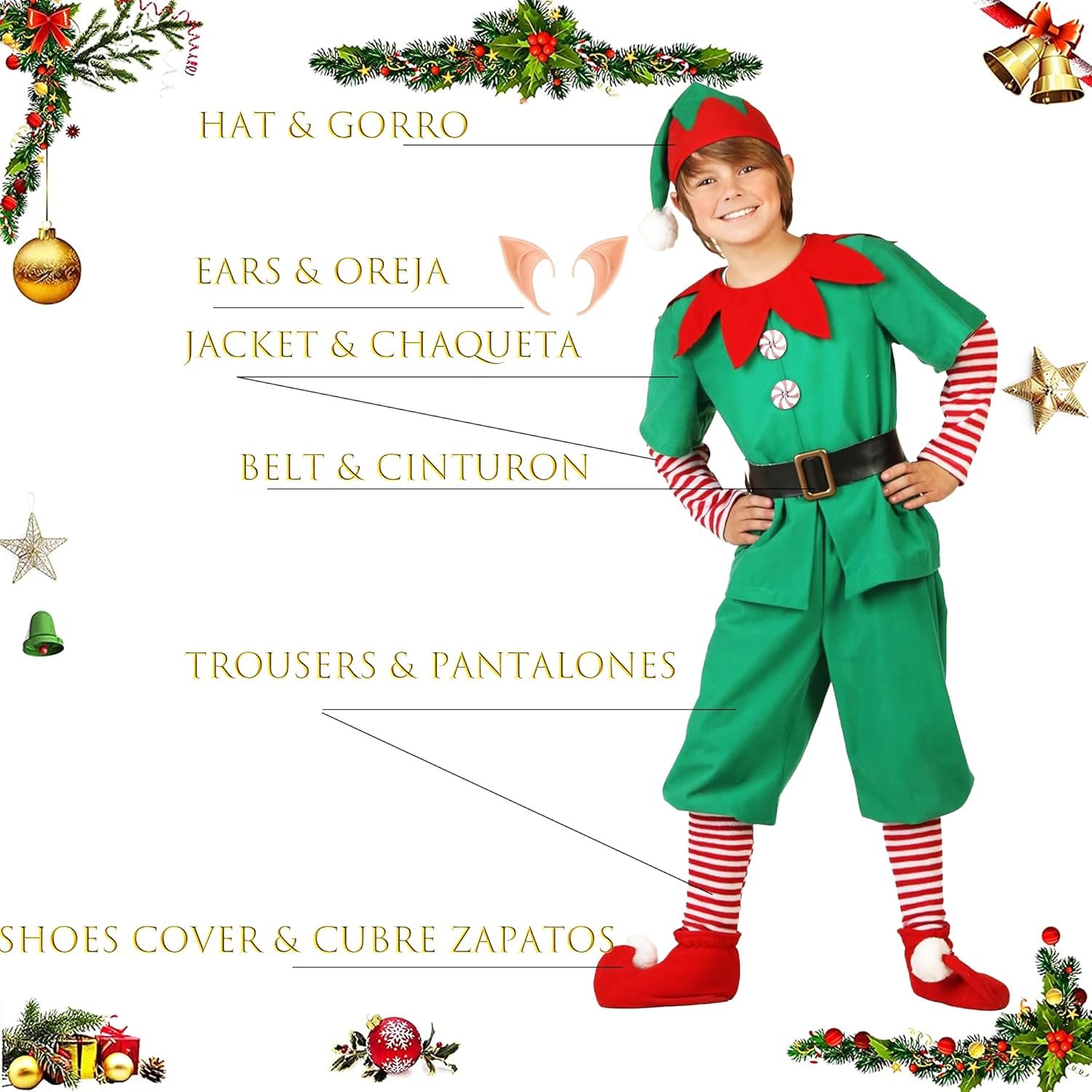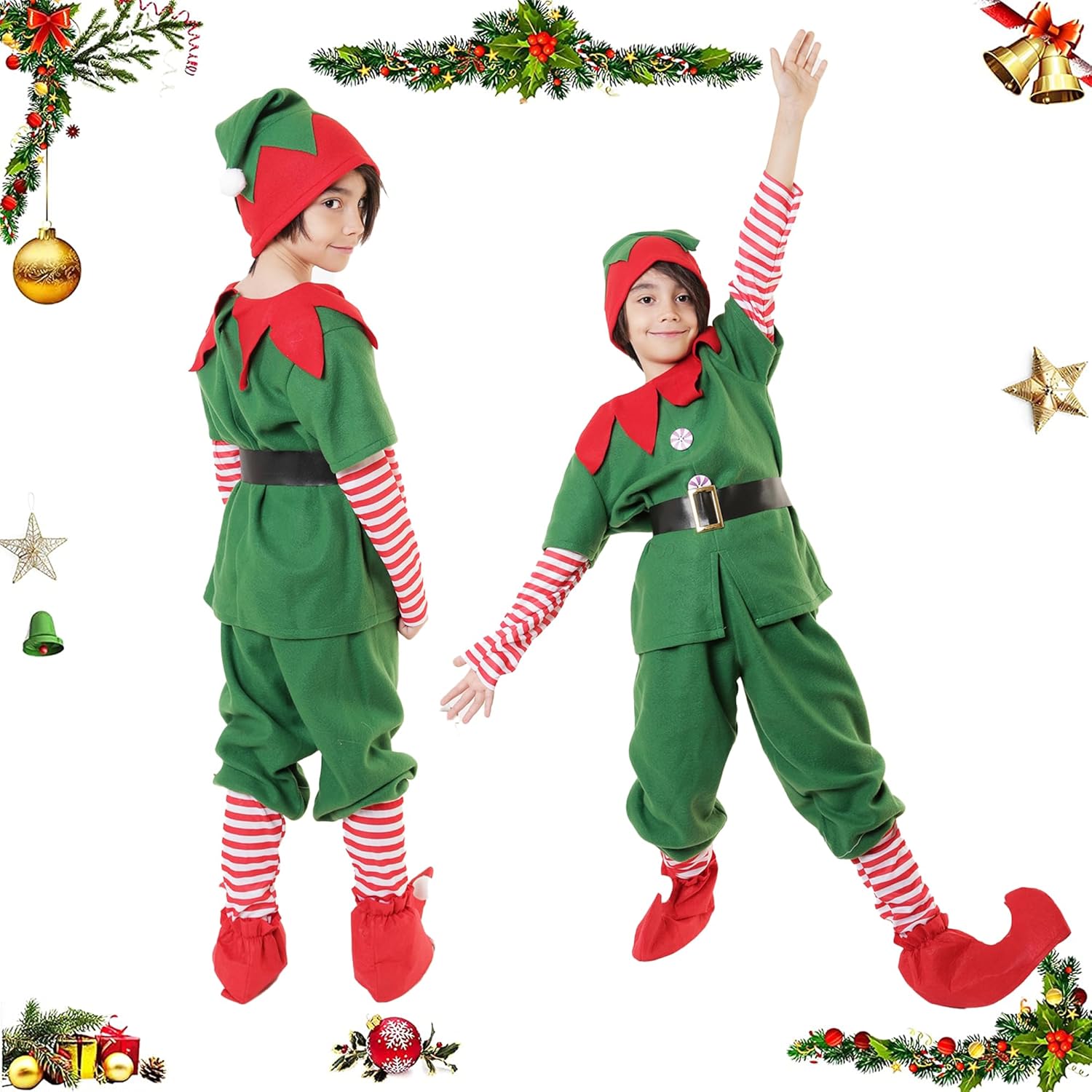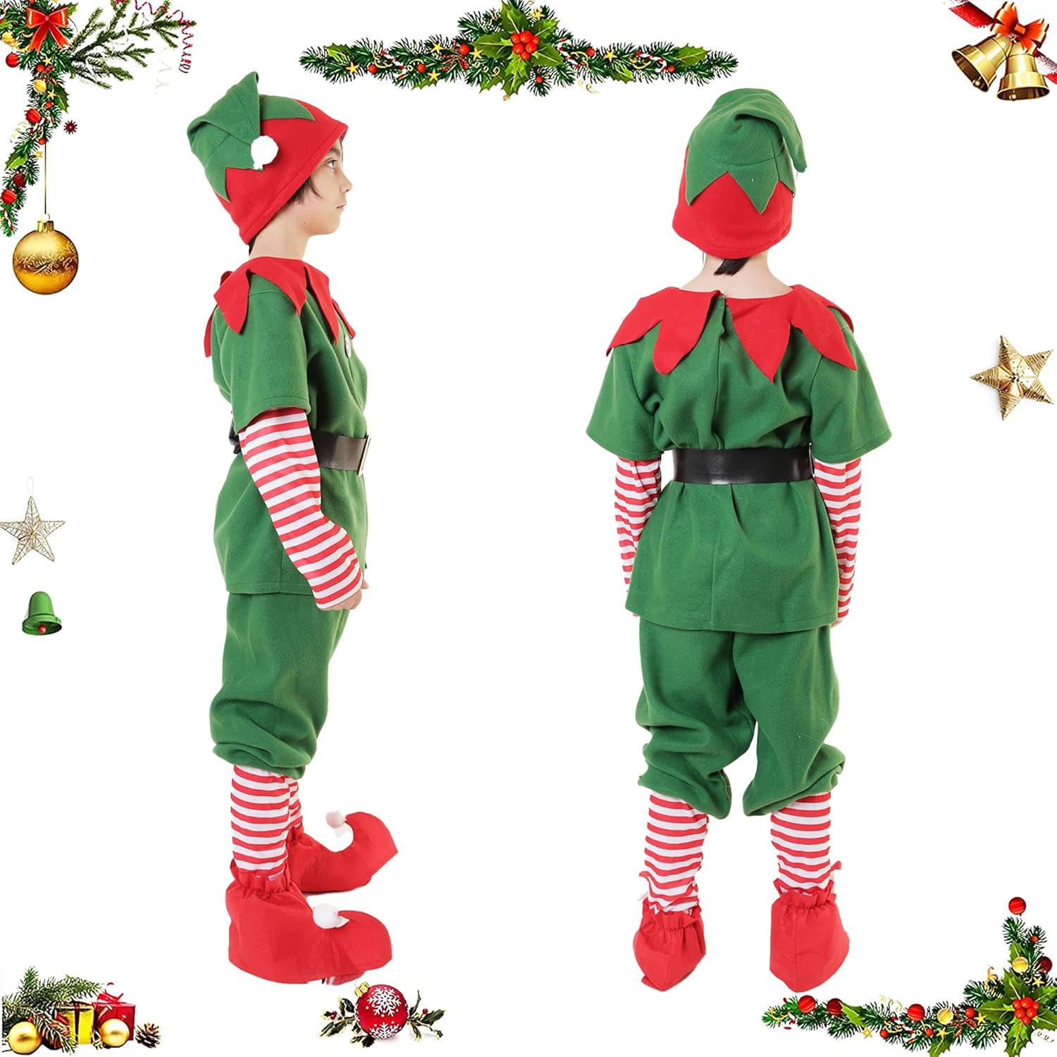 Immergiti nella magia della stagione con il nostro adorabile costume da elfo per tutta la famiglia, disponibile per bambini, ragazze, uomini e donne. Caratteristiche: Porta divertimento e comfort: il costume natalizio da cosplay elfo per donna, uomo, ragazza e ragazzo non si tratta solo di funzionalità ma anche di eleganza. Con una cintura regolabile, questo costume da elfo garantisce una vestibilità comoda e i vivaci colori natalizi e le orecchie da elfo portano una vera gioia festiva. Un regalo festivo ideale: Tenendo conto dei suoi colori tradizionali, del suo comfort e della gioia che trasmette, il costume natalizio da elfo per donna uomo ragazza e ragazzo è un regalo ideale per il tuo partner, amici e familiari. La gioia e le risate che questo regalo porteranno diventeranno parte dei momenti memorabili delle festività natalizie. Materiale principale: Abito e cappello: poliestere feltro Scarpa (costume elfo ragazzo): feltro medio al ginocchio (costume elfo ragazza): poliestere e nylon Orecchie: silicone Colore principale: rosso e verde. Note: misurazione manuale, consentire piccoli errori di dimensioni. Si prega di controllare attentamente le dimensioni prima di ordinare. Il colore potrebbe esserci una leggera differenza a causa delle diverse impostazioni dello schermo.
