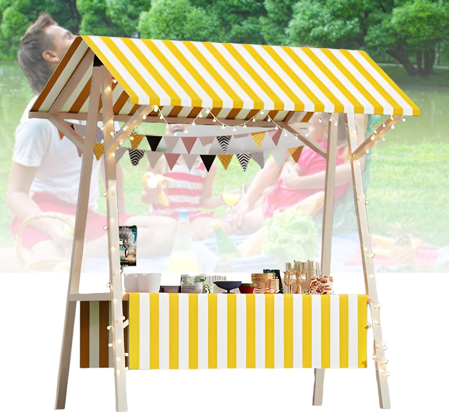 【 Espositore pieghevole 】: Il nostro stand per il mercato agricolo si piega rapidamente in soli 30 secondi. Si ripiega per occupare meno spazio, risparmiando spazio. Più facile da riporre nel bagagliaio, in garage, in cantina, in casa, ecc., risparmiando anche sull'affitto. 【 Carrello per venditori in legno 】: I nostri carretti per il cibo da strada sono realizzati con assi da banco larghe 60 cm (23 5/8") e gambe in legno spesse 4 cm (1 5/8"). Il telaio in legno massello e la struttura triangolare aumentano la capacità di carico. 【 Chiosco per il mercato con tettoia 】: Dotato di una tettoia in tessuto Oxford, che protegge efficacemente dal sole. Può proteggere la merce dai danni dovuti al maltempo, causando perdite economiche. Viene fornito con eleganti tovaglie per attirare l'attenzione dei clienti. 【 Bancarella per venditori versatile 】: Che tu operi in centri commerciali, mercati agricoli, fiere, chioschi al dettaglio o sedi per eventi all'aperto. Che tu venda cibo, giocattoli, fiori, regali o altri prodotti, è l'ideale per i venditori ambulanti. 【Installazione fai da te】: l'installazione e il montaggio fai da te richiedono solo pochi minuti. Ideale per venditori ambulanti, bancarelle ed eventi all'aperto, offre una soluzione aziendale mobile versatile.